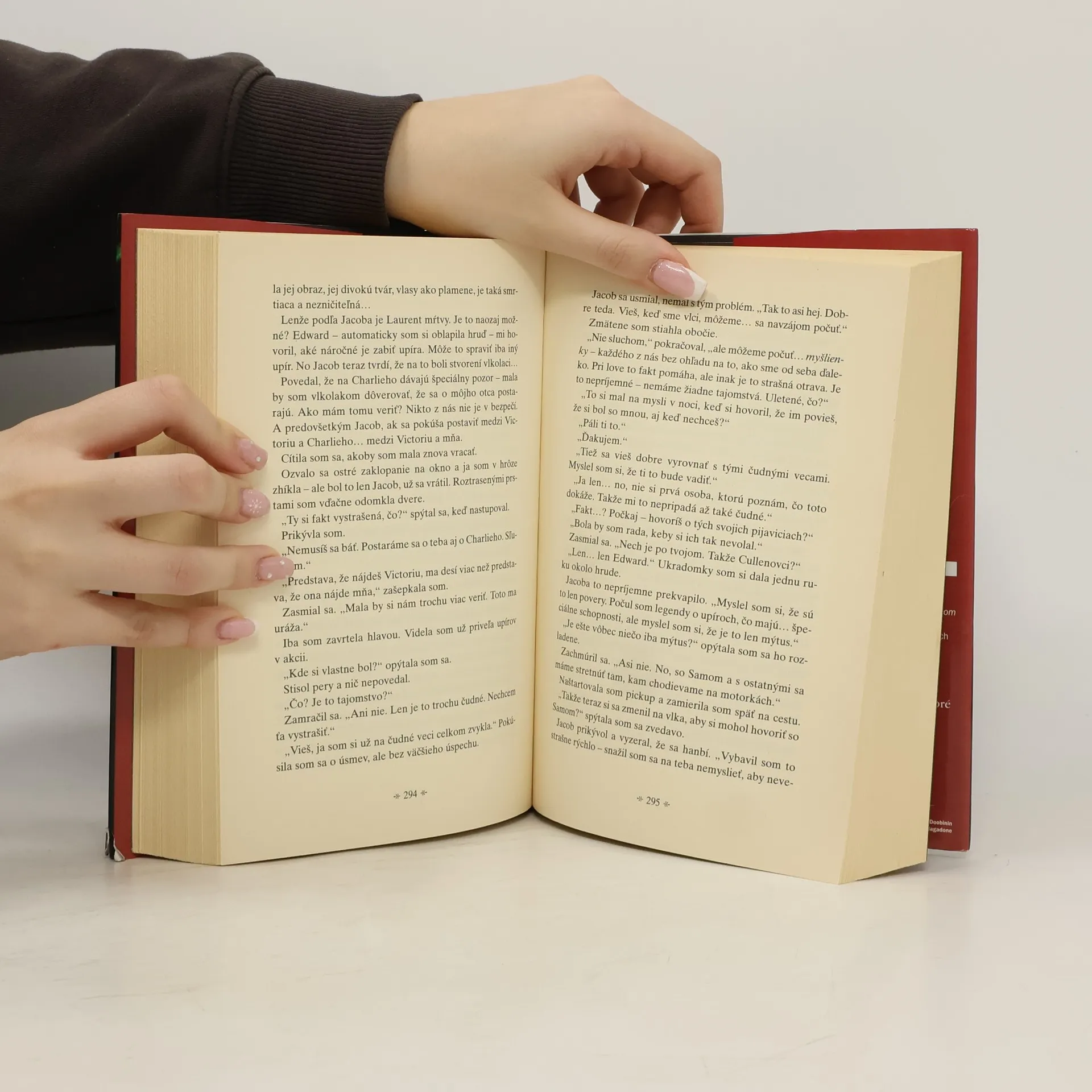 Musím říct, že mé nadšení z prvního dílu se naprosto nedá vyrovnat dílu druhému. Je to něco naprosto odlišného. Hodně mi tu chybí postava Edwarda Cullena, protože hlavně díky němu jsou ty knihy a příběh samotný, tak zajímavý, je to kontrast zlo x dobro. V téhle knize se objevuje většinou pouze Bella a Jacob, což je pro mě jako dobro x dobro, proto jsem se při čtení druhého dílu hodně nudila.