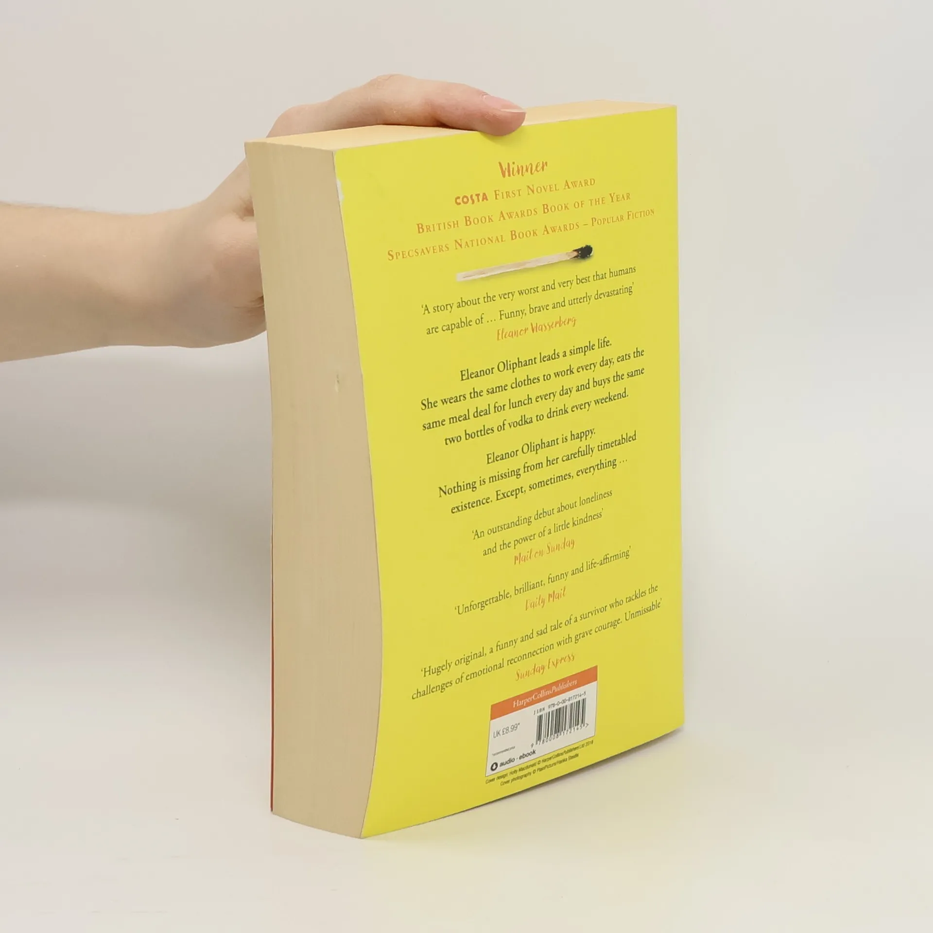 Over 2.5 million copies sold 'Funny, touching and unpredictable' Jojo Moyes 'Heartwrenching and wonderful' Nina Stibbe Winner of Costa First Novel Award, a No.1 Sunday Times bestseller and the Book of the Year Eleanor Oliphant has learned how to survive - but not how to live Eleanor Oliphant leads a simple life. She wears the same clothes to work every day, eats the same meal deal for lunch every day and buys the same two bottles of vodka to drink every weekend. Eleanor Oliphant is happy. Nothing is missing from her carefully timetabled life. Except, sometimes, everything. One simple act of kindness is about to shatter the walls Eleanor has built around herself. Now she must learn how to navigate the world that everyone else seems to take for granted - while searching for the courage to face the dark corners she's avoided all her life. Change can be good. Change can be bad. But surely any change is better than... fine? 'Moving, funny and devastating' The Herald 'Unforgettable, brilliant, funny and life-affirming' Daily Mail 'I adored it. Skilled, perceptive, Eleanor's world will feel familiar to you from the very first page. An outstanding debut!' Joanna Cannon