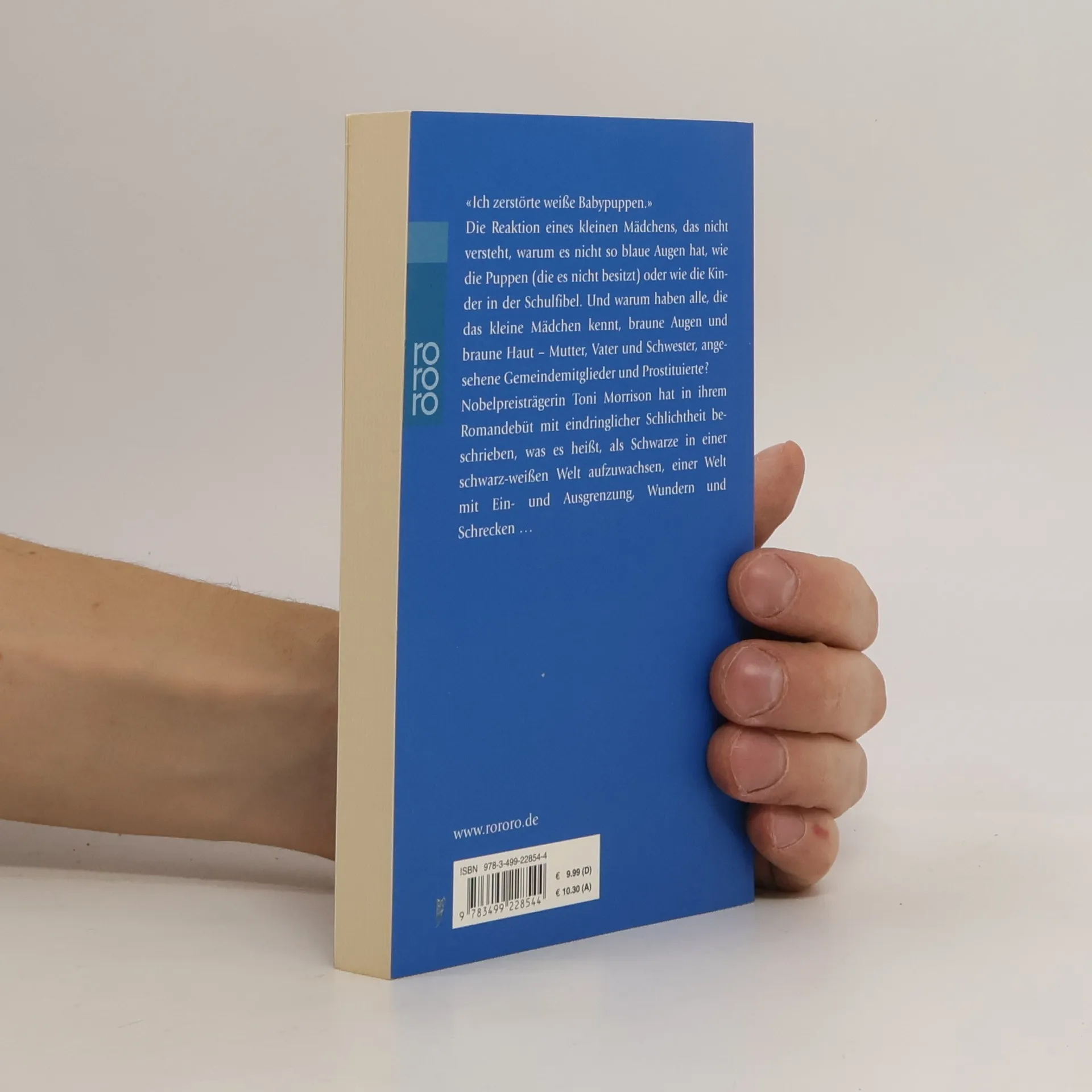 "Ich zerstörte weiße Babypuppen." Die Reaktion eines kleinen Mädchens, das nicht versteht, warum es nicht so blaue Augen hat, wie die Puppen (die es nicht besitzt) oder wie die Kinder in der Schulfibel. Und warum haben alle, die das kleine Mädchen kennt, braune Augen und braune Haut - Mutter, Vater und Schwester, angesehene Gemeindemitglieder und Prostituierte ? Nobelpreisträgerin Toni Morrison hat in ihrem Romandebüt mit eindringlicher Schlichtheit beschrieben, was es heißt, als Schwarze in einer schwarz-weißen Welt aufzuwachsen, einer Welt mit Ein- und Ausgrenzung, Wundern und Schrecken ...