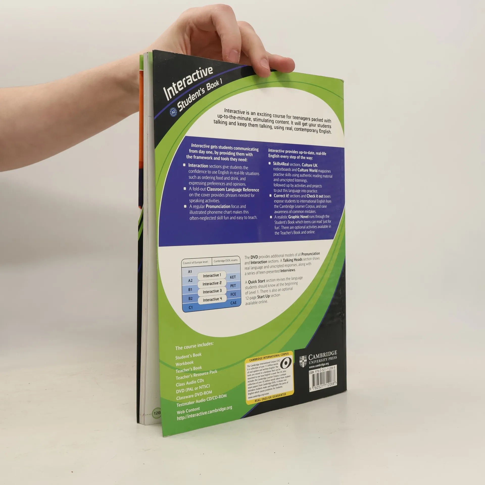Interactive is an exciting four-level course for teenage learners from elementary to upper-intermediate levels (CEF A2-B2). The Level 1 Student's Book will get and keep your students talking, using real, contemporary English. 'Interaction' sections give learners the confidence to use English in real-life situations and a fold-out classroom language reference on the cover provides students with the phrases they need for speaking activities. 'Skills4Real' sections, 'Culture UK' noticeboards and 'Culture World' magazines practise skills using authentic reading material, and unscripted listenings, with activities and projects to put this language into practice.