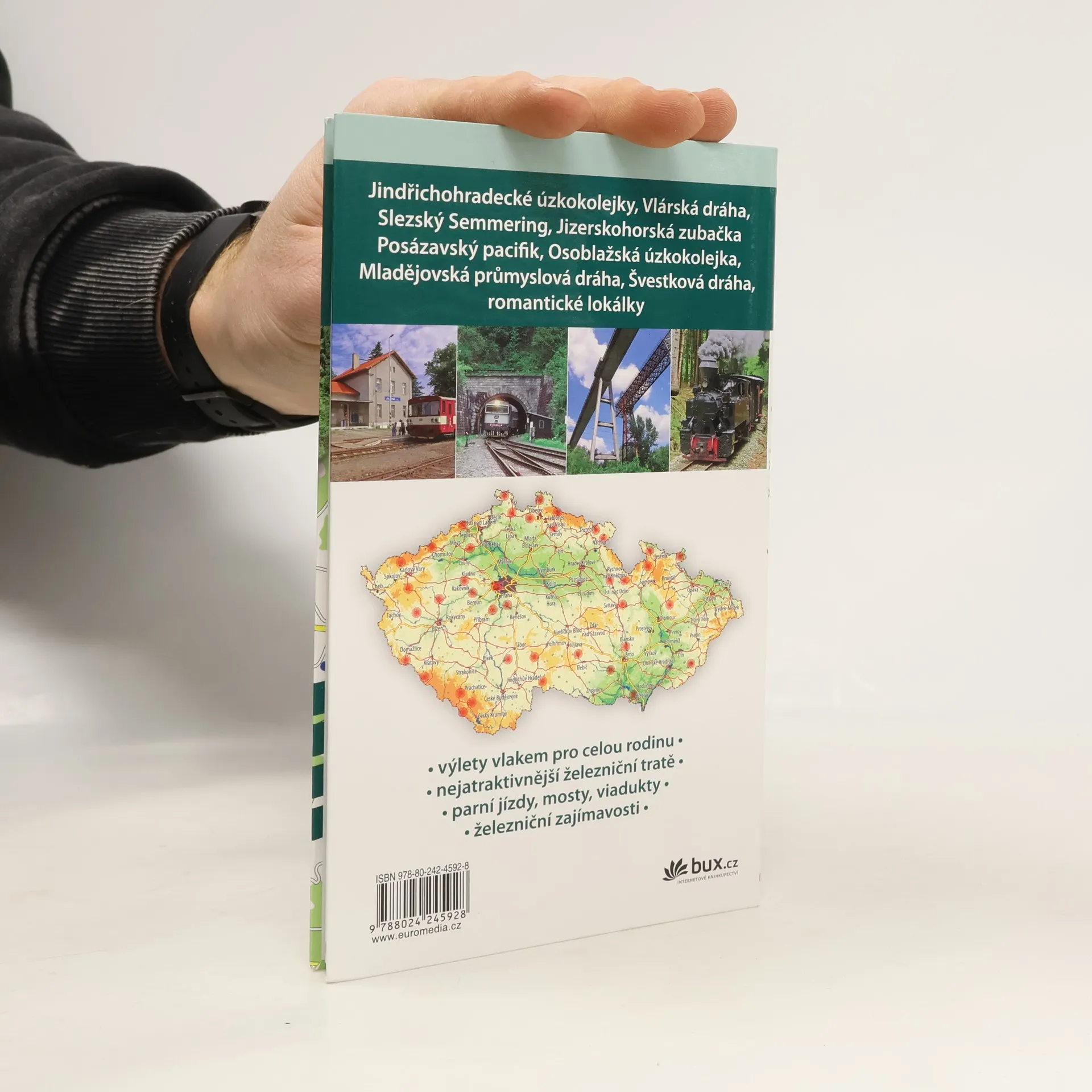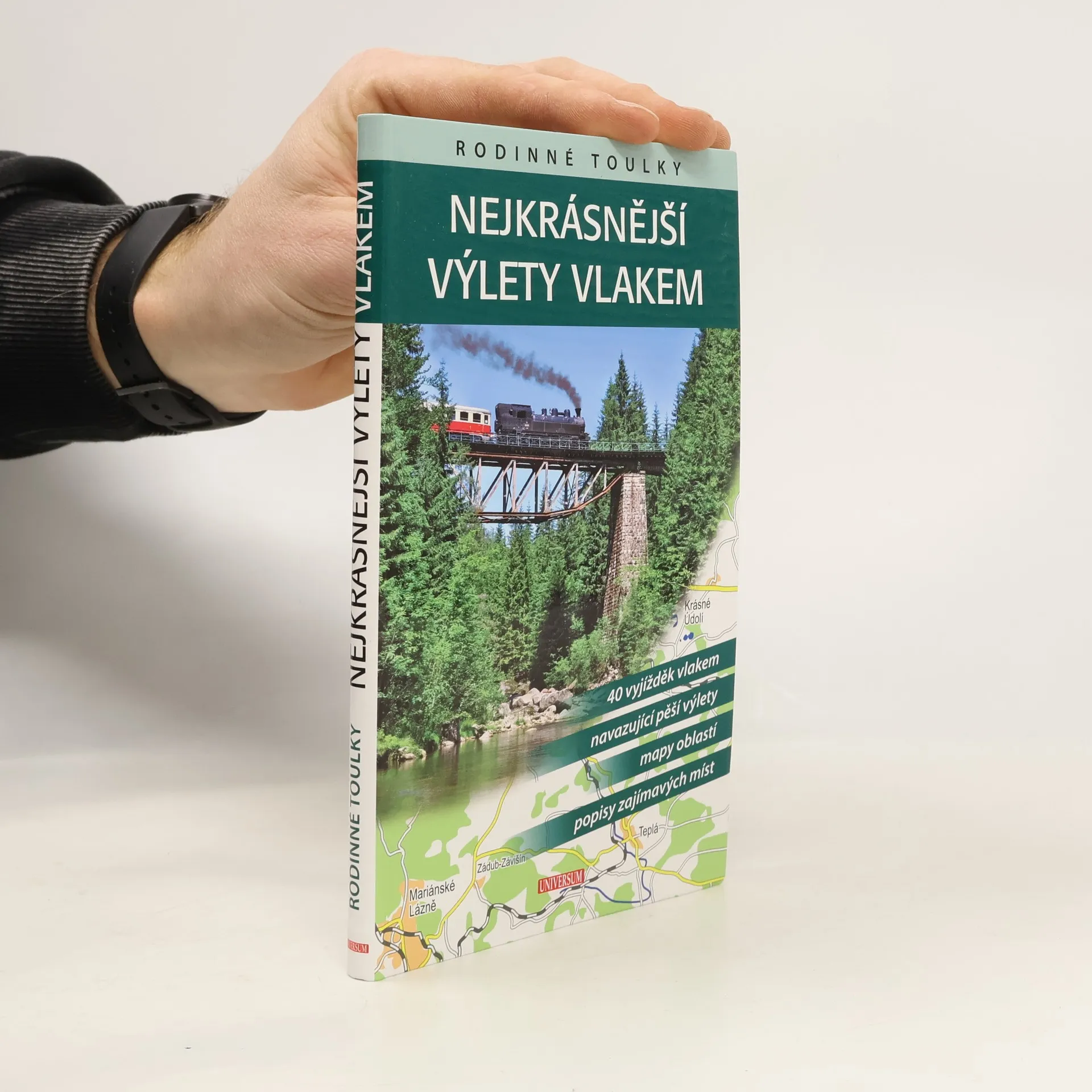 Ideálním, avšak trochu opomíjeným prostředkem k putování krajinou je vlak. Vždyť naše vlast se může pochlubit téměř nejhustší železniční sítí v Evropě, staleté lokálky míří i do těch nejzapadlejších koutů. Autoři připravili "kuchařku" 40 výletů po těch nejkrásnějších tratích či jejich úsecích u nás. Vlak nás umí zavést i na místa, kam se jinak nedostaneme. Nebudeme se však pouze dívat z okénka, nechybí ani nabídka pěšího výletu tipu "Vystup a jdi". Cestování vlakem je pro většinu lidí příjemnou změnou, užijí si je i děti. A když se místo běžného motoráčku objeví parní lokomotiva…