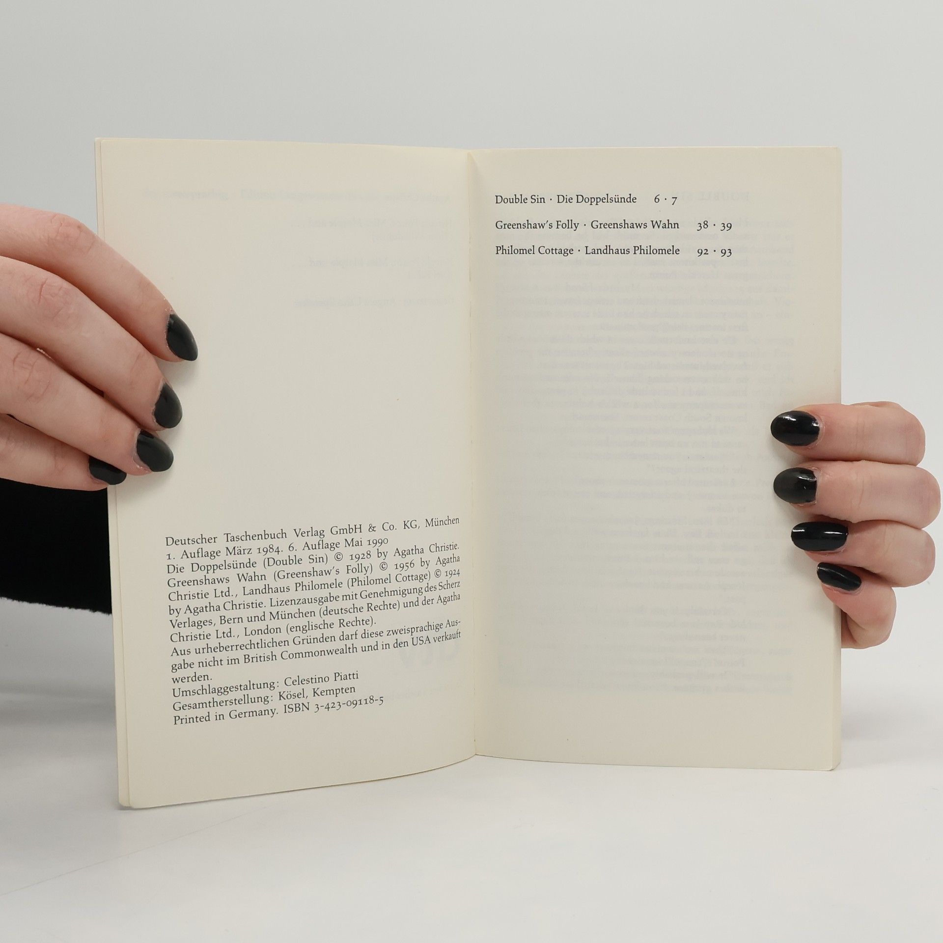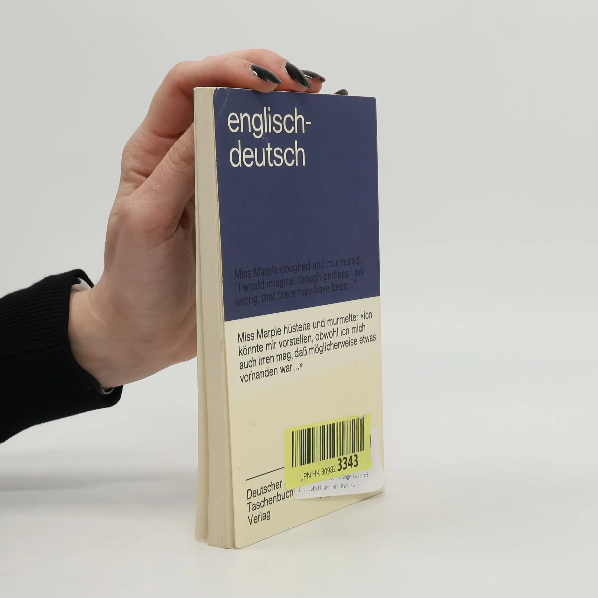 Dieser Band enthält in englisch-deutschem Paralleldruck drei Erzählungender Großmeisterin Agatha Christie (1890-1976), drei Kirminalfälle - nunja, der erste ist gerade eine Fingerübung für Hercule Poirot (warnend erhobenerZeigefinger für kleine Mädchen), unblutig ...in der zweiten geht es umein schaurig-schönes Schloß (und kein Alibi hindert Miss Marple daran,nachdenklich weiter zu hüsteln) ...in der dritten geht es - geht es umLe ... - geht es um Alix Martin, geb. King (und jedes weitere Wort wärehier schon zu viel).