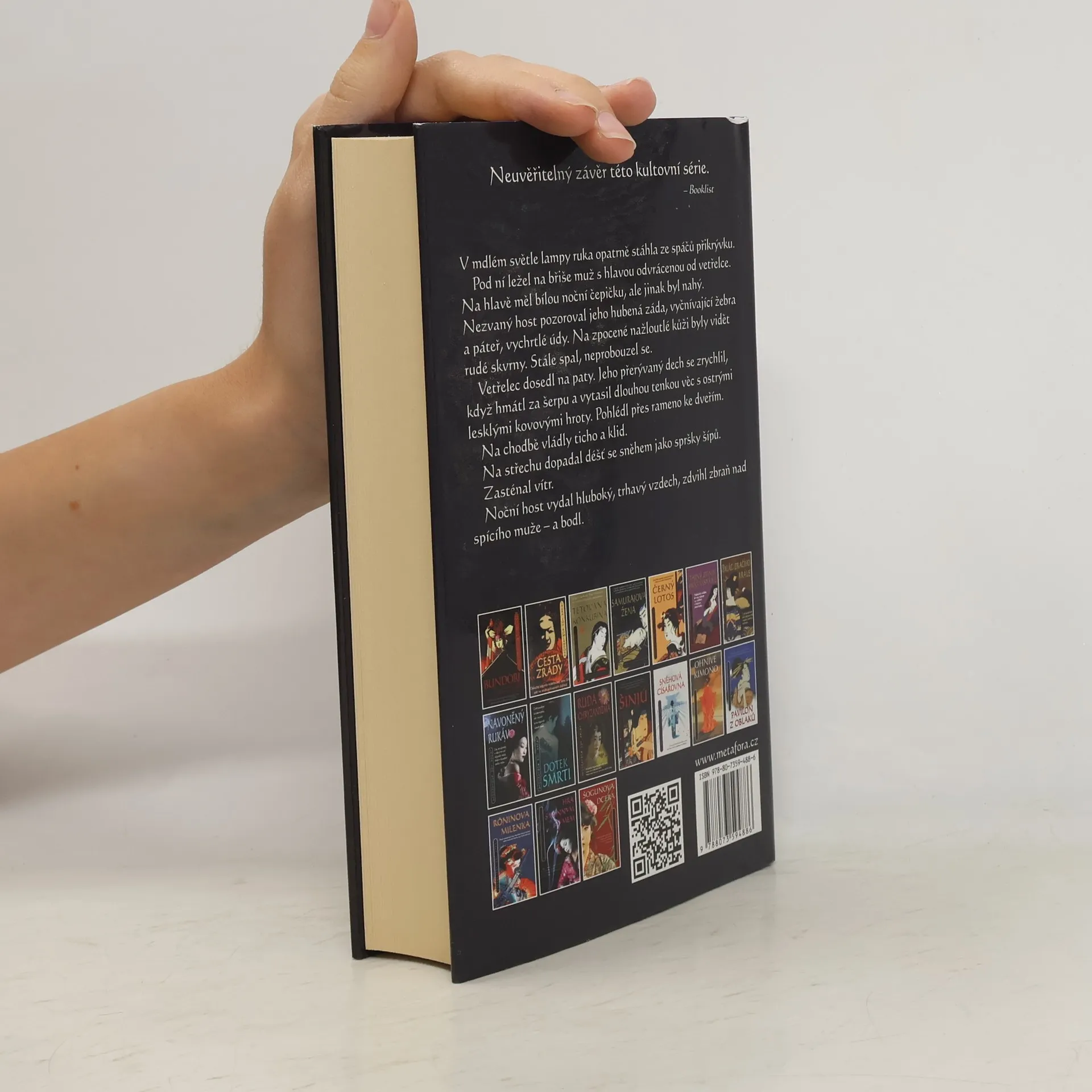 Sano Ičiró stojí před nejnebezpečnějším případem své kariéry. Kdo se pokusil zavraždit šóguna? Jsme v Japonsku, píše se rok 1709… Šógun je starý a nemocný. Sano Ičiró, kdysi druhý muž ve státě, je dvorskými intrikami zbaven vysokého úřadu a degradován na obyčejného policistu městské hlídky. A nejen to. Také jeho manželství je v troskách. Nevyzná se už ani ve své ženě Reiko, natož v tom, proč jeho dlouholetý sok Janagisawa uzavřel nepochopitelné spojenectví se šógunovým synovcem a následníkem Ienobuem, kterého by měl naopak nenávidět. Co za tím vězí? A pak dojde k neuvěřitelnému zločinu. Někdo pokusí zavraždit šóguna. Ve spánku, v jeho vlastní ložnici. A také zbraň je naprosto neobvyklá. Útočník mu zasadí několik bodných ran vějířem s ostrými kovovými hroty. Sano se opět ocitá v centru dění. Před sebou má nejdůležitější a nejnebezpečnější případ, jaký kdy musel vyšetřit. Znelíbí-li se šógunovu nástupci, který ho vůbec nemá v lásce, bude odsouzen k smrti i s celou rodinou. Na Sanově pomoci je přitom závislá i rodina jeho hlavního dvořana a přítele Hiraty, který ji opustil, když se stal hříčkou temných sil, rozpoutaných jistou tajnou společností. Propadá jim čím dál víc… A ani děti Sanovi a Reiko nic neulehčí, hlavně proto, že už přestávají být dětmi. Sano se nečekaně ocitá v centru vzpoury, uprostřed občanské války, jež ohrožuje celé Japonsko. Z nepřátel se stávají spojenci a všechno spěje k ohromujícímu rozuzlení…