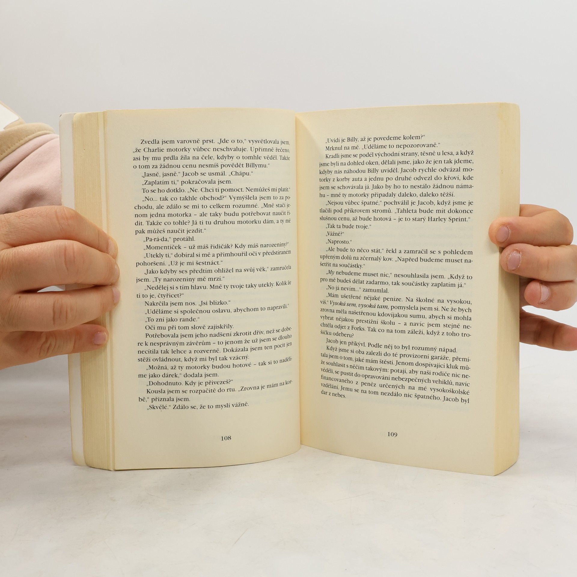 Musím říct, že mé nadšení z prvního dílu se naprosto nedá vyrovnat dílu druhému. Je to něco naprosto odlišného. Hodně mi tu chybí postava Edwarda Cullena, protože hlavně díky němu jsou ty knihy a příběh samotný, tak zajímavý, je to kontrast zlo x dobro. V téhle knize se objevuje většinou pouze Bella a Jacob, což je pro mě jako dobro x dobro, proto jsem se při čtení druhého dílu hodně nudila.