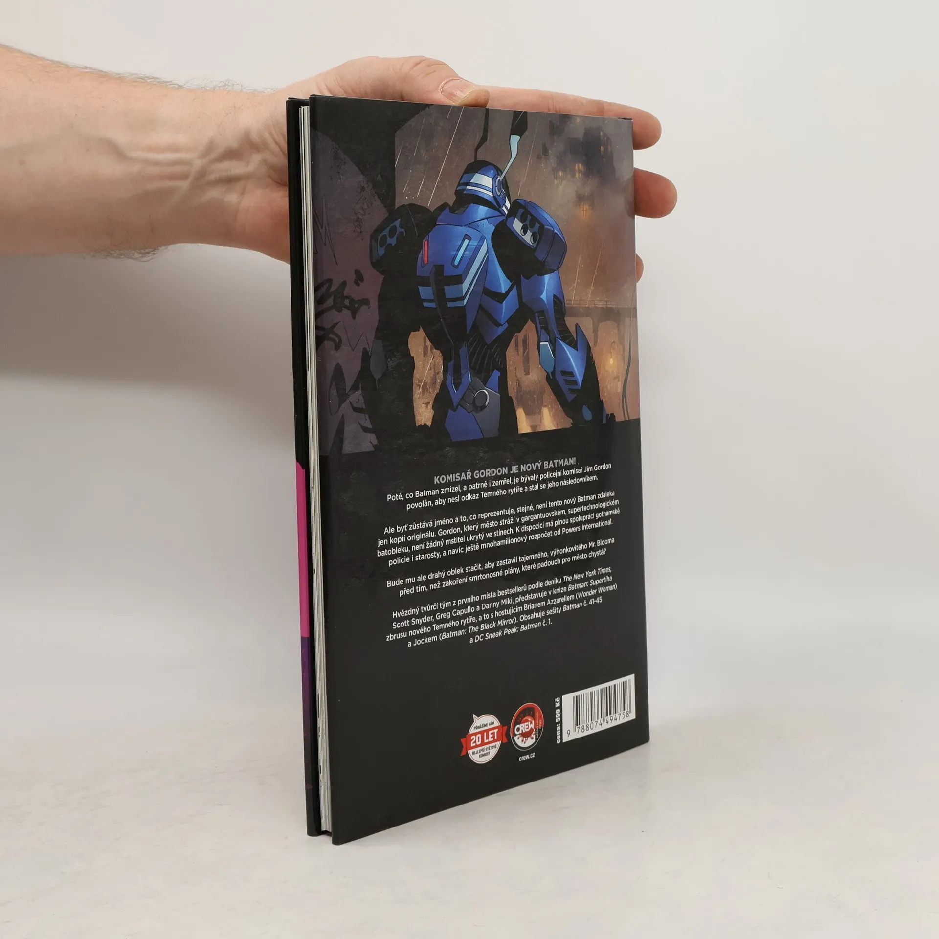 KOMISAŘ GORDON JE NOVÝ BATMAN! Poté, co Batman zmizel, a patrně i zemřel, je bývalý policejní komisař Jim Gordon povolán, aby nesl odkaz Temného rytíře a stal se jeho následovníkem. Ale byť zůstává jméno a to, co reprezentuje, stejné, není tento nový Batman zdaleka jen kopií originálu. Gordon, který město stráží v gargantuovském, supertechnologickém batobleku, není žádný mstitel ukrytý ve stínech. K dispozici má plnou spolupráci gothamské policie i starosty, a navíc ještě mnohamilionový rozpočet od Powers International. Bude mu ale drahý oblek stačit, aby zastavil tajemného, výhonkovitého Mr. Blooma před tím, než zakoření smrtonosné plány, které padouch pro město chystá?