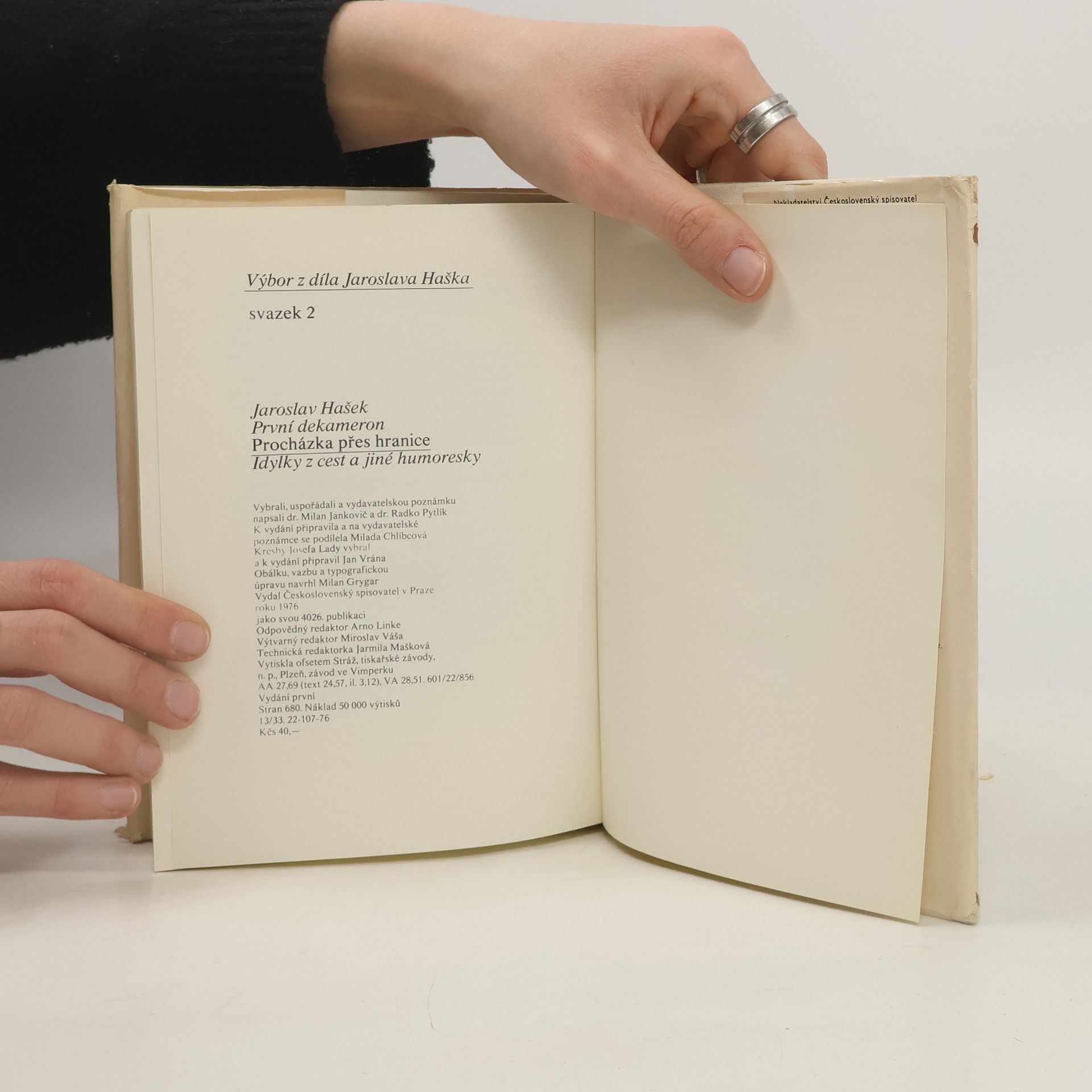 Idylky z cest a jiné humoresky. Procházka přes hranice, první ze tří povídkových svazků vybraných spisů J. Haška, má být především dobrou četbou. Zařazení většího počtu povídek z cest, humoresek o dětech a zvířatech a vzpomínkových cyklů k tomu jistě přispěje. Zejména povídky zcest jsou u Haška nepřebernou zásobárnou pozorování života, které nás plně zaujme. Povídky z cest, zařazené do tohoto svazku, jsou vybrány z dlouhého časového úseku (1902-1914); nalezneme mezi nimi překvapivě zralé práce začátečnické i mistrovská dílka z pozdějších let. Základem vydání je u většiny povídek jejich časopisecké znění, u povídek, které vyšly za Haškova života také knižně, toto jejich znění poslední. I v tomto případě však bylo přihlíženo k původnímu časopiseckému otisku; srovnání obou textů totiž prokázalo, že některé úpravy, provedené patrně z iniciativy nakladatelství nebo tiskárny, mají puristický ráz, anebo zřejmým zásahem cenzury vedly k významovému oslabení kritického záměru.