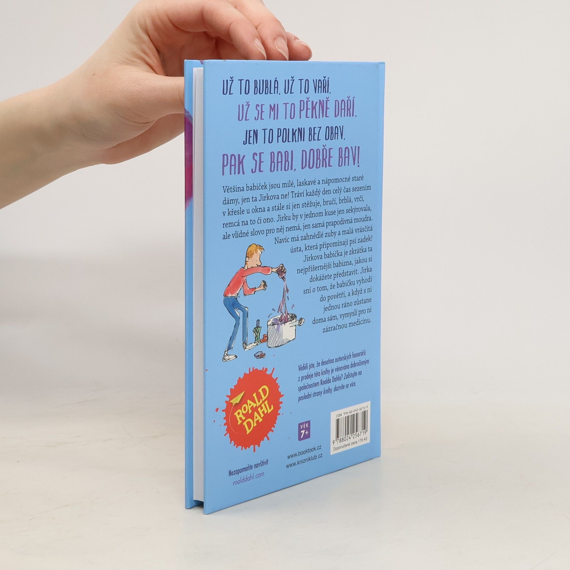 Většina babiček jsou milé, laskavé a nápomocné staré dámy, jen ta Jirkova ne! Tráví každý den celý čas sezením v křesle u okna a stále si jen stěžuje, bručí, brblá, vrčí, remcá na to či ono. Jirku by v jednom kuse jen sekýrovala, ale vlídné slovo pro něj nemá, jen samá prapodivná moudra. Navíc má zahnědlé zuby a malá vrásčitá ústa, která připomínají psí zadek! Jirkova babička je zkrátka ta nejpříšernější babizna, jakou si dokážete představit. Jirka sní o tom, že babičku vyhodí do povětří, a když s ní jednou ráno zůstane doma sám, vymyslí pro ni zázračnou medicínu. Kniha je určena pro děti od 7 let.