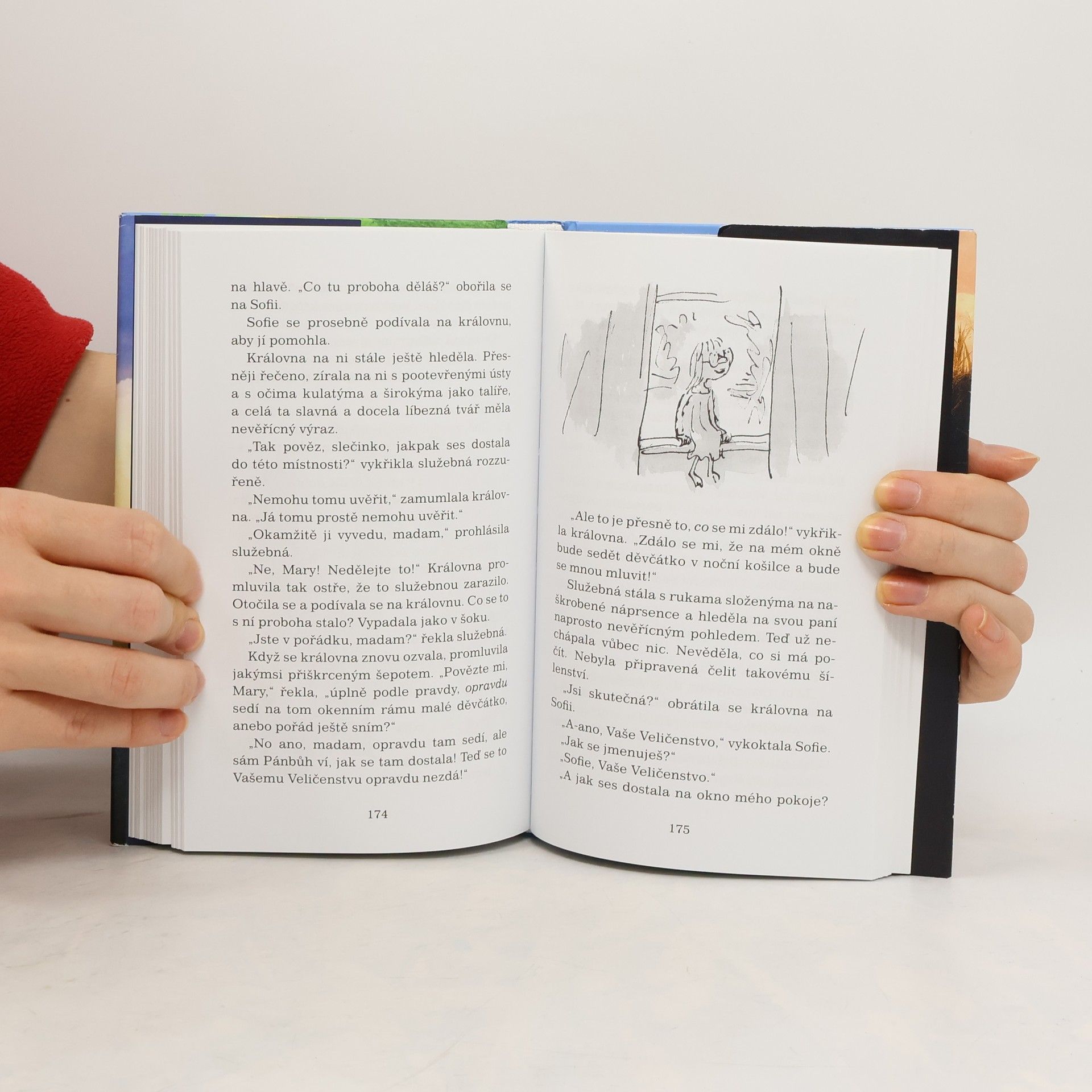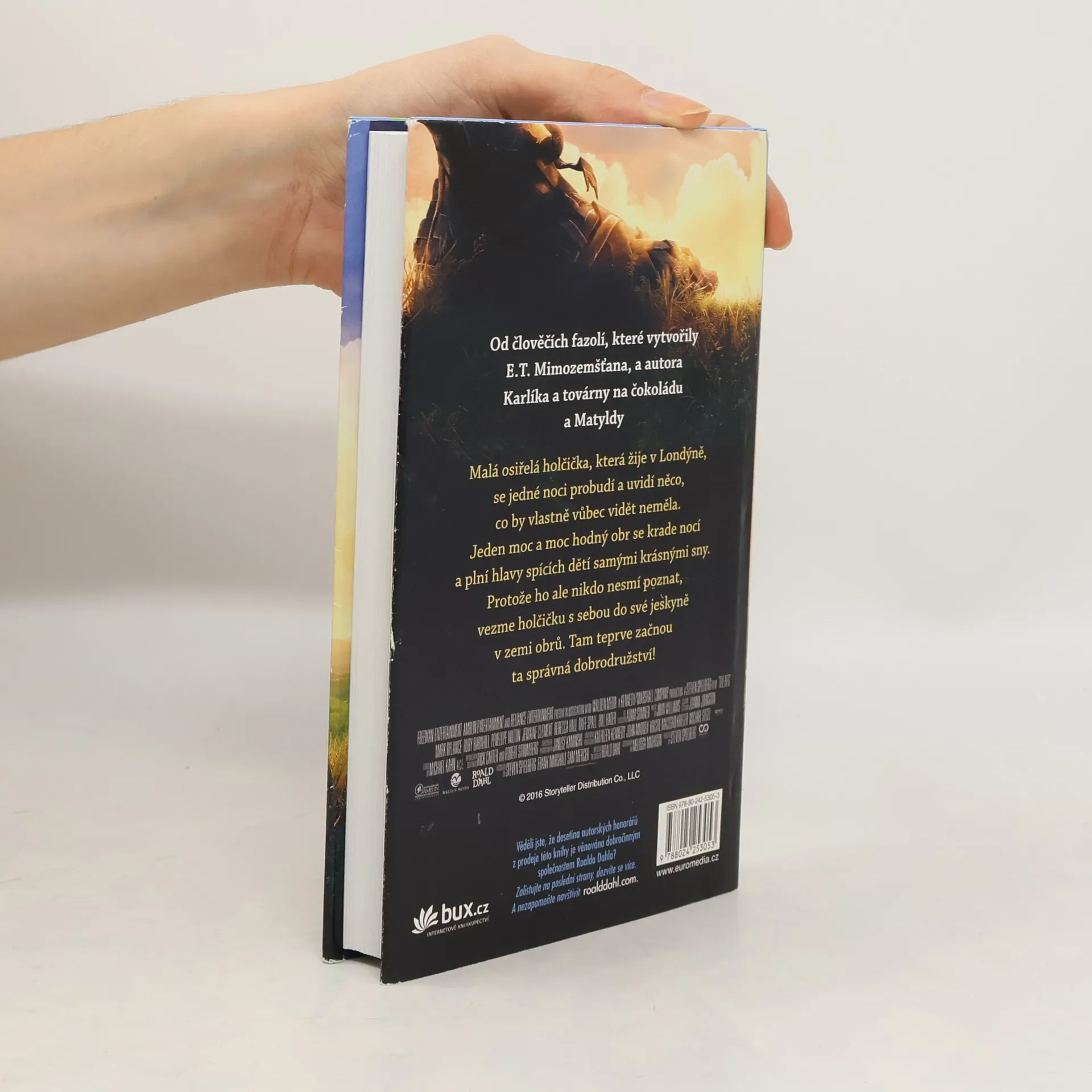 Malá osiřelá holčička, která žije v Londýně, se jedné noci probudí a uvidí něco, co by vlastně vůbec vidět neměla. Jeden moc a moc hodný obr se krade nocí a plní hlavy spících dětí samými krásnými sny. Protože ho ale nikdo nesmí poznat, vezme holčičku s sebou do své jeskyně v zemi obrů. Tam teprve začnou ta správná dobrodružství! Knihu zfilmoval Steven Spielberg. Stejnojmenný film přijde do českých kin 30.6.2016.