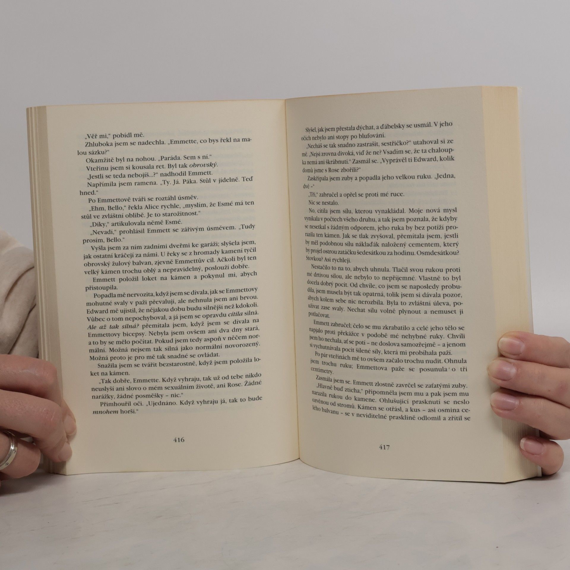 Z celé série se mi stejně nejvíc líbil první díl a mám to tak stejně i u filmu. Bylo to něco zajímavého a díky tomu vypukla mánie ohledně upírů (i když za jeho původ můžeme děkovat Draculovi). Já se většinou téhle mánii a hysterii vyhýbám a knihu si přečtu až po nějakém čase. Ze série Stmívání jsem měla pocit, že byla úplně zbytečně natahovaná. Milostný trojúhelník mezi Bellou, Edwardem a Jacobem byl naprosto zbytečný, protože již od začátku bylo jasné s kým nakonec skončí. Rozbřesk je jen další zbytečná natahovačka, která nenabízí nic, co by mě jako čtenáře dokázalo nějak uspokojit nebo potěšit. První polovina je o něco lepší než ta druhá. Jakmile se Bella promění jde to do kopru a stává se z toho filozofický blábol, kde každý nad něčím polemizuje. Prostě naprosto zbytečná kniha....