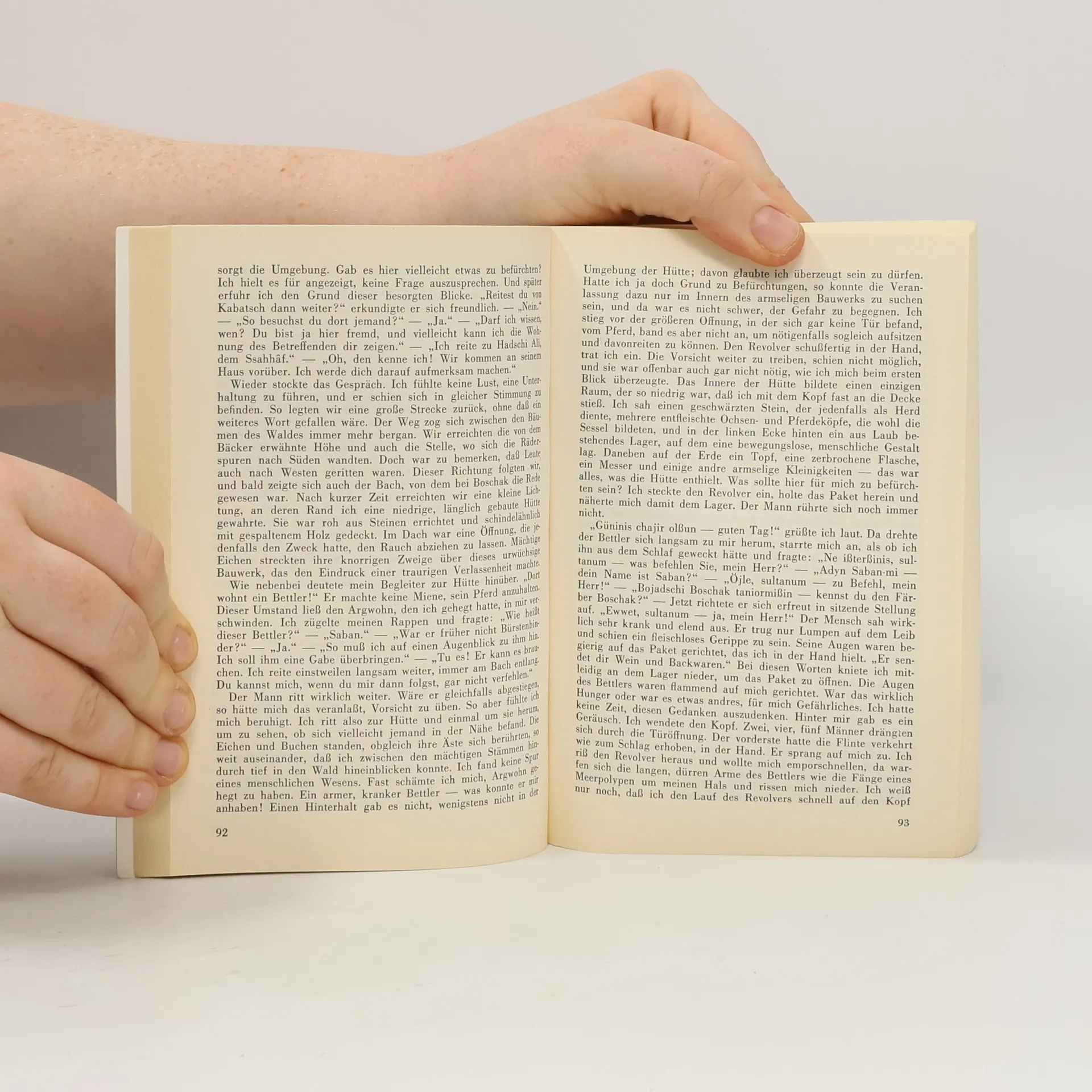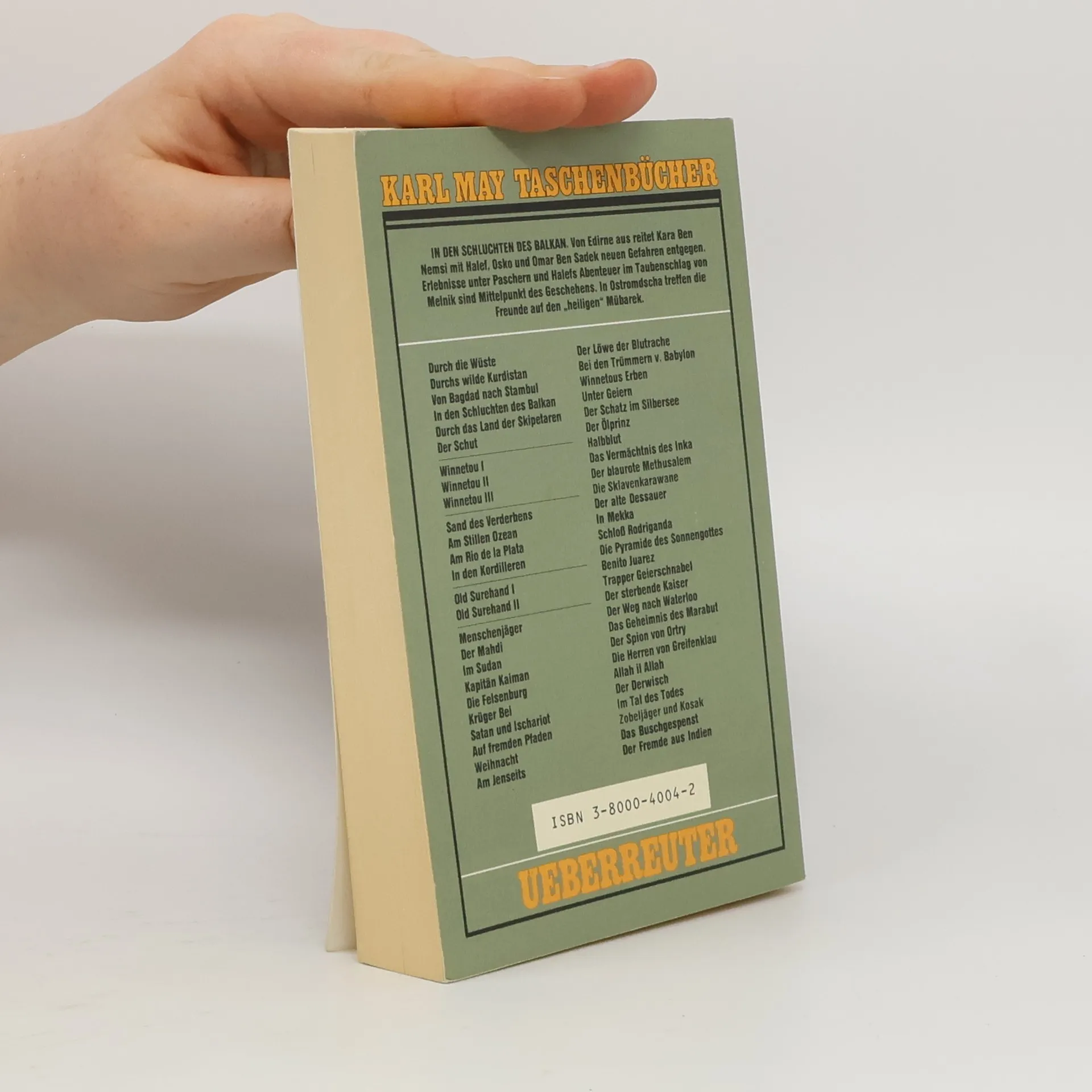 Von Edirne aus reitet Kara Ben Nemsi mit Halef, Osko und Omar Ben Sadek neuen Gefahren entgegen. Abenteuer mit Schmugglern und Halefs groteskes Erlebnis in einem Taubenschlag stehen im Mittelpunkt des Geschehens. In Ostromdscha aber treffen die Freunde auf den "heiligen" Mübarek...