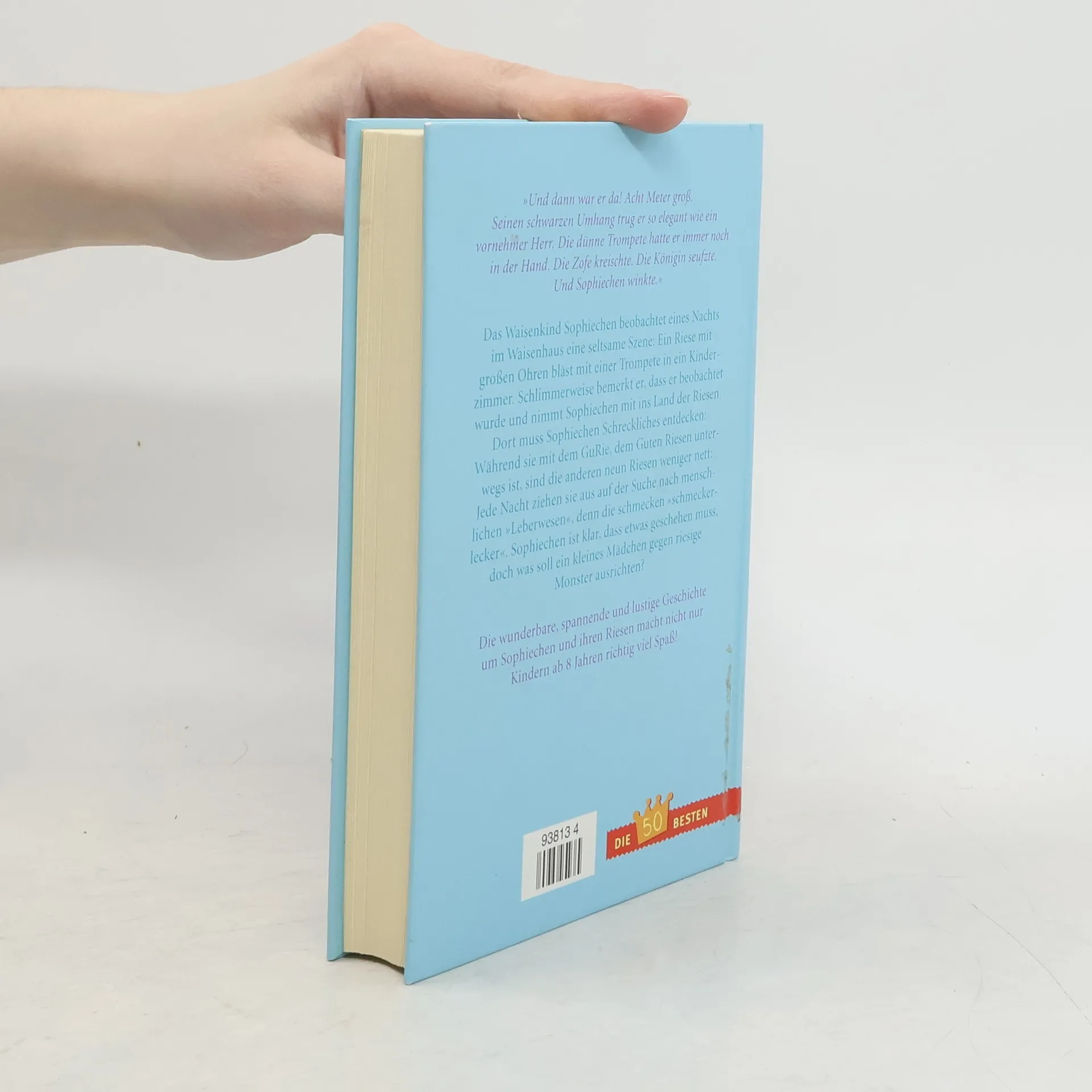 "Und dann war er da! Acht Meter groß. Seinen schwarzen Umhang trug er so elegant wie ein vornehmer Herr. Die dünne Trompete hat er immer noch in der Hand. Die Zofe kreischt. Die Königin seufzte. Und Sophiechen winkte." Ausgezeichnet mit dem Deutschen Jugendliteraturpreis.