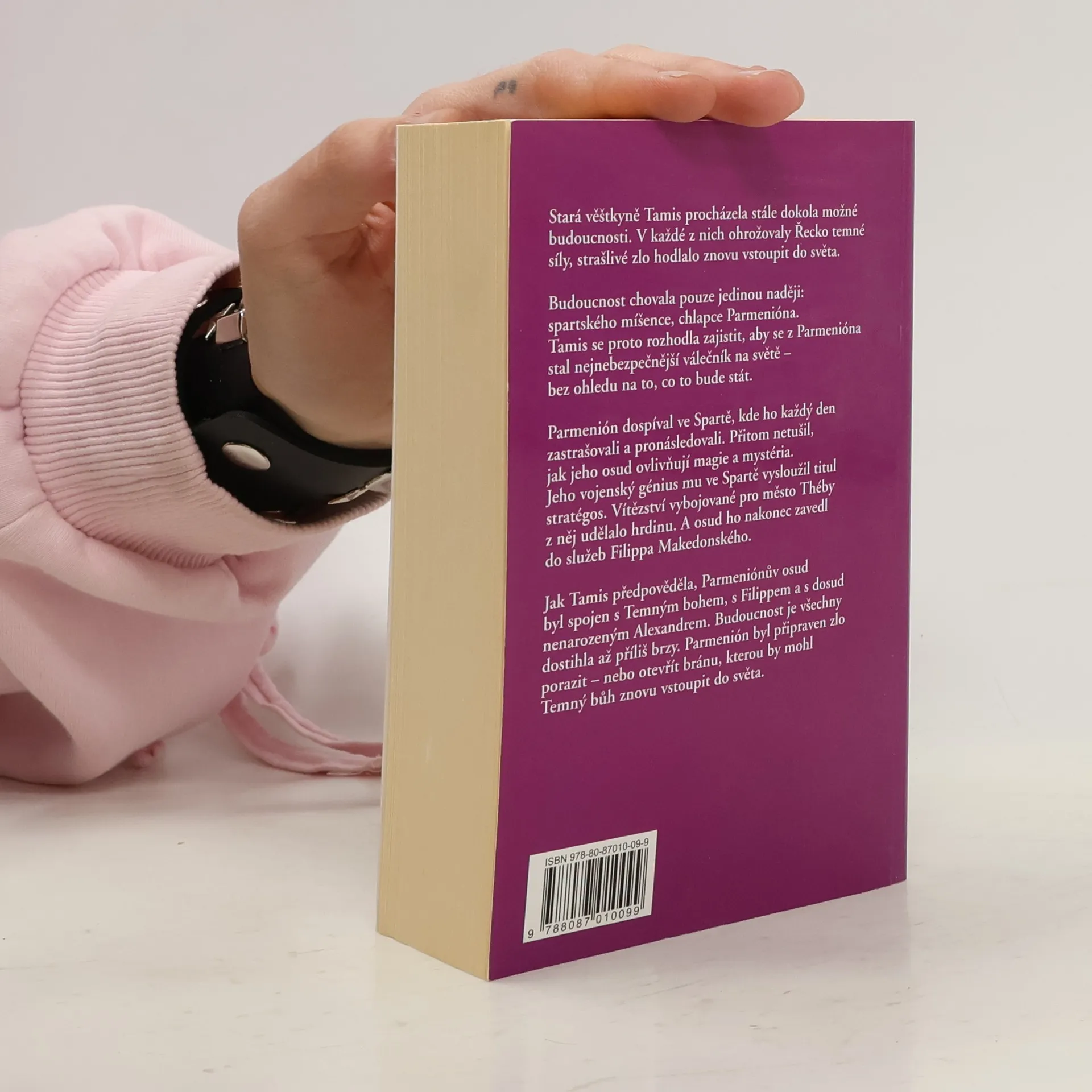 První kniha duologie Lev Makedonský. Stará věštkyně Tamis procházela stále dokola možné budoucnosti. V každé z nich ohrožovaly Řecko temné síly, strašlivé zlo hodlalo znovu vstoupit do světa. Budoucnost chovala pouze jedinou naději: spartského míšence, chlapce Parmenióna. Tamis se proto rozhodla zajistit, aby se z Parmenióna stal nejnebezpečnější válečník na světě - bez ohledu na to, co to bude stát. Parmenión dospíval ve Spartě, kde ho každý den zastrašovali a pronásledovali. Přitom netušil, jak jeho osud ovlivňují magie a mystérie. Jeho vojenský génius mu ve Spartě vysloužil titul stratégos. Vítězství vybojované pro město Théby z něj udělalo hrdinu. A osud ho nakonec zavedl do služeb Filippa Makedonského. Jak Tamis předpověděla, Parmeniónův osud byl spojen s Temným bohem, s Filippem a s dosud nenarozeným Alexandrem. Budoucnost je všechny dostihla až příliš brzy. Parmenión byl připraven zlo porazit - nebo otevřít bránu, kterou by mohl Temný bůh znovu vstoupit do světa. -- zdroj: legie.info --