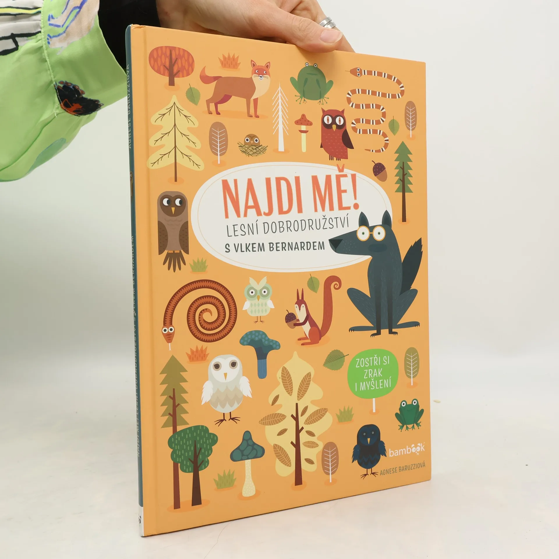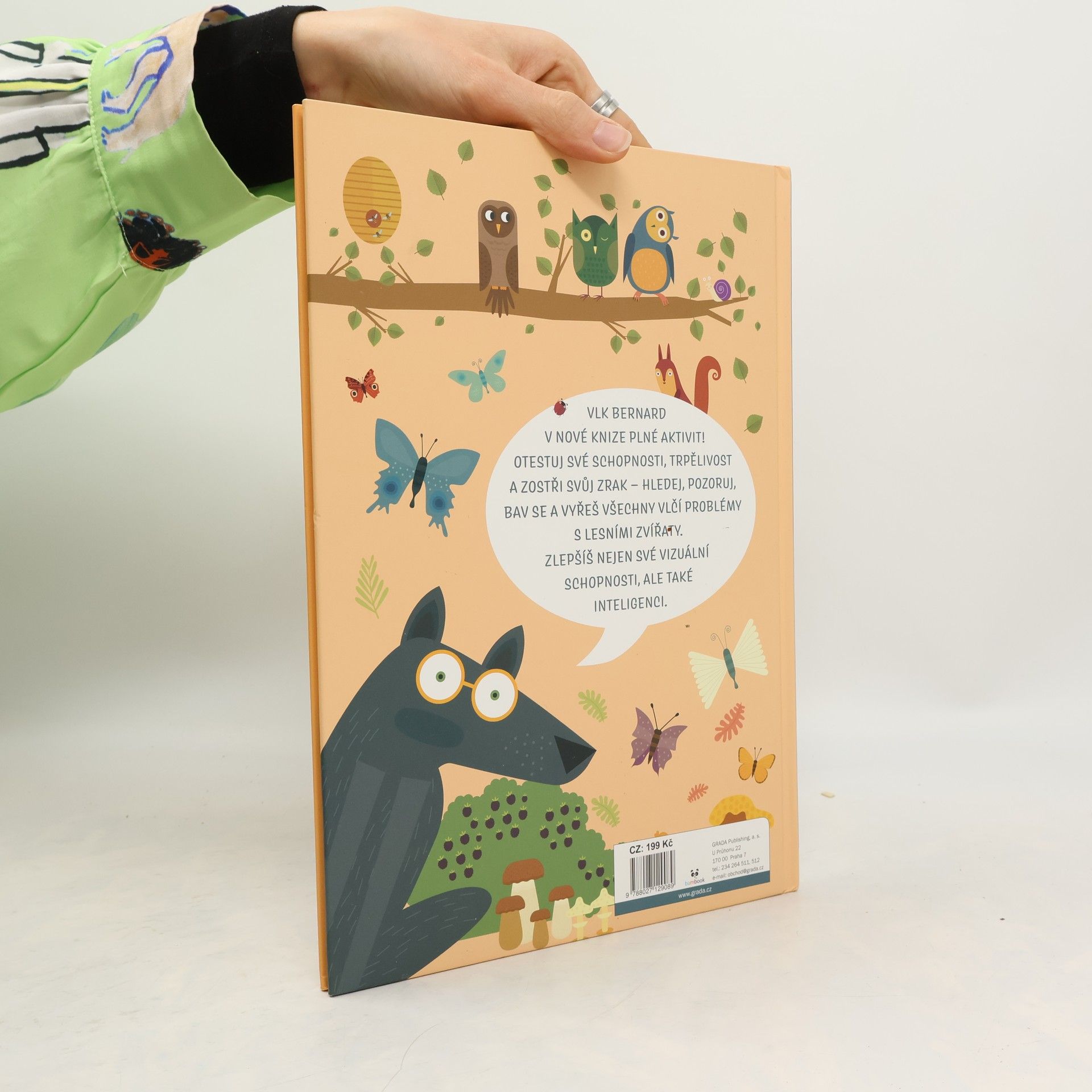 Už jste někdy potkali vlka v brýlích? Ale Bernard je opravdu potřebuje. Kamarádka veverka by mu ráda pomohla a zlepšila jeho vidění - proto pro něj chystá různé hledací hry, které Bernarda baví a ještě mu ostří zrak. Děti si s knihou užijí spoustu legrace a zároveň budou trénovat svůj postřeh, trpělivost a soustředění.