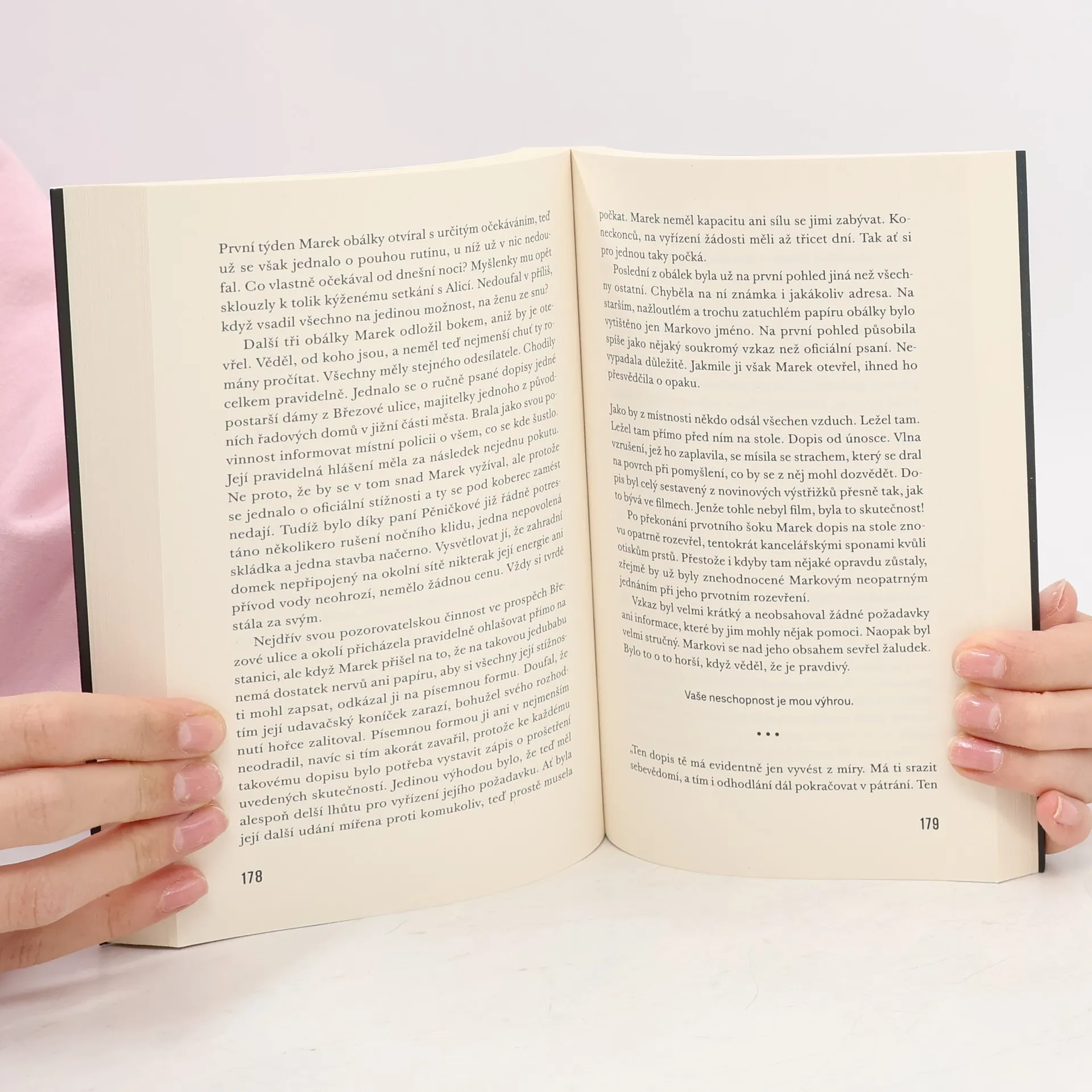 Vědomí nepravděpodobného je jen pomyslnou hranicí toho, co se může stát skutečností... Detektivní román české autorky. Velitel místního policejního sboru Marek bojuje s vlastními démony, když se v dosud poklidném maloměstě začnou ztrácet děti. Do toho musí spolupracovat s novým členem sboru Adamem, kterého nemůže vystát, a do snů mu vstupuje neznámá žena Alice, jež tvrdí, že mu s případem může pomoci. Když se jednoho dne tato žena objeví na prahu jeho domu, Marek si není jistý, jestli se nezbláznil. Najednou se ocitá ve víru událostí, které nejenže otestují jeho detektivní schopnosti, ale vypustí na povrch i řadu nevyřešených událostí z Markovy minulosti, s nimiž se bude muset vyrovnat... Nakladatelská anotace.