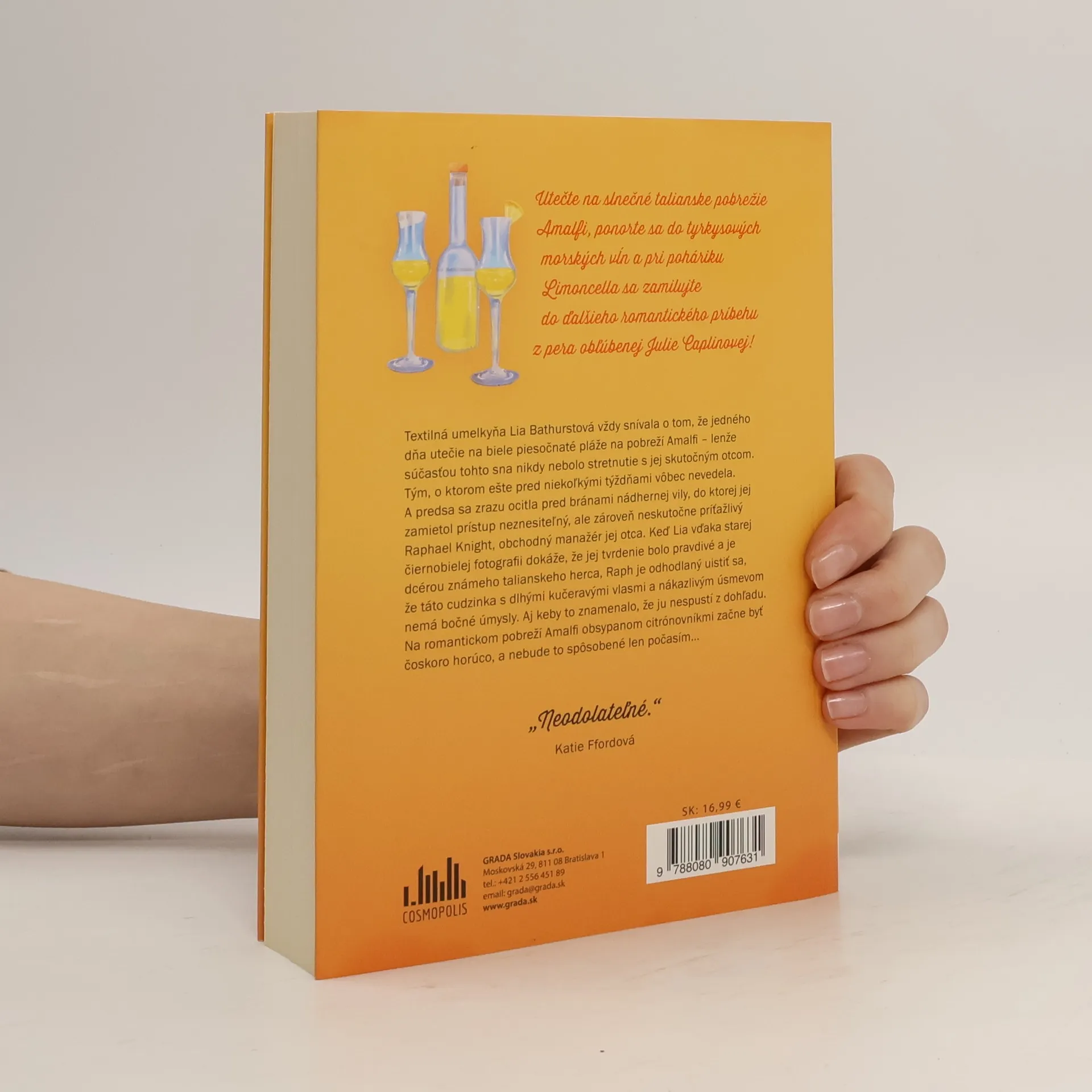 Lia Bathurst vždy snívala o úteku na biele piesočnaté pláže a o tyrkysovo modrom mori na pobreží Amalfi – lenže tento sen nezahŕňal stretnutie s jej skutočným otcom. Tým, o ktorom ešte pred niekoľkými týždňami vôbec nevedela. A predsa tu zrazu stojí pred bránami nádhernej ružovej vily,do ktorej jej zamietol prístup neznesiteľný – a zároveň neskutočne príťažlivý – Raphael Knight, obchodný manažér jej otca. Keď stará čiernobiela fotografia dokáže, že Liino tvrdenie je pravdivé, Raph je odhodlaný uistiť sa, že táto cudzinka s dlhými karamelovými vlasmi a nákazlivým úsmevom nemá postranné úmysly. Aj keby to znamenalo, že ju nespustí z dohľadu. Na pobreží Amalfi obsypanom citrónovníkmi začína byť horúco, a nie je to spôsobené len počasím...