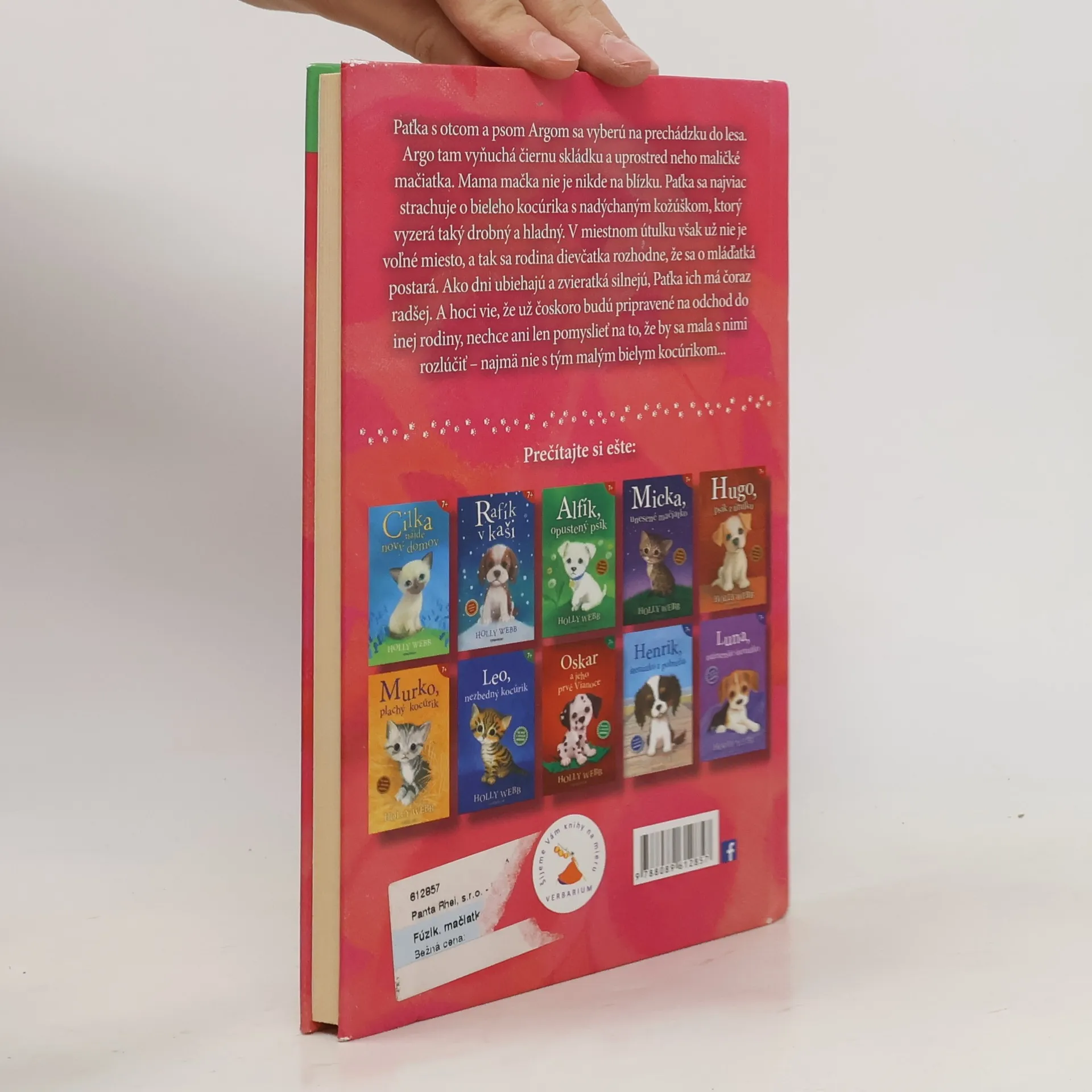 Paťka s otcom a psom Argom sa vyberú na prechádzku do lesa. Argo tam vyňuchá čiernu skládku a uprostred neho maličké mačiatka. Mama mačka nie je nikde na blízku. Paťka sa najviac strachuje o bieleho kocúrika s nadýchaným kožúškom, ktorý vyzerá taký drobný a hladný. V miestnom útulku však už nie je voľné miesto, a tak sa rodina dievčatka rozhodne, že sa o mláďatká postará. Ako dni ubiehajú a zvieratká silnejú, Paťka ich má čoraz radšej. A hoci vie, že už čoskoro budú pripravené na odchod do inej rodiny, nechce ani len pomyslieť na to, že by sa mala s nimi rozlúčiť – najmä nie s tým malým bielym kocúrikom...