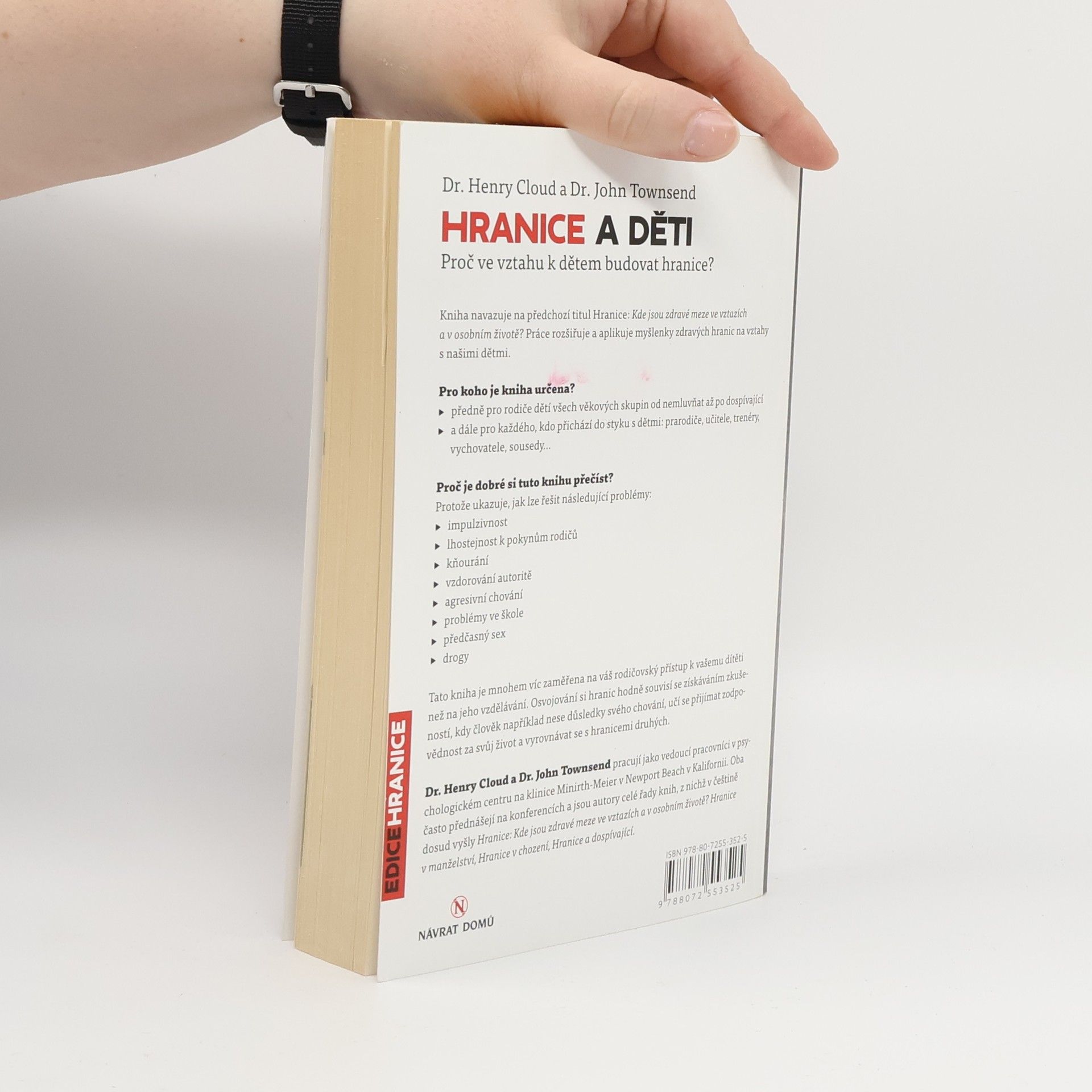 Proč ve vztahu k dětem budovat hranice? Kniha navazuje na předchozí titul Hranice: Kde jsou zdravé meze ve vztazích a v osobním životě? Práce rozšiřuje a aplikuje myšlenky zdravých hranic na vztahy s našimi dětmi. Pro koho je kniha určena? - předně pro rodiče dětí všech věkových skupin od nemluvňat až po dospívající - a dále pro každého, kdo přichází do styku s dětmi: prarodiče, učitele, trenéry, vychovatele, sousedy... Proč je dobré si tuto knihu přečíst? Protože ukazuje, jak lze řešit následující problémy: - impulzivnost - lhostejnost k pokynům rodičů - kňourání - vzdorování autoritě - agresivní chování - problémy ve škole - předčasný sex - drogy Tato kniha je mnohem víc zaměřena na váš rodičovský přístup k vašemu dítěti než na jeho vzdělávání. Osvojování si hranic hodně souvisí se získáváním zkušeností, kdy člověk například nese důsledky svého chování, učí se přijímat zodpovědnost za svůj život a vyrovnávat se s hranicemi druhých.