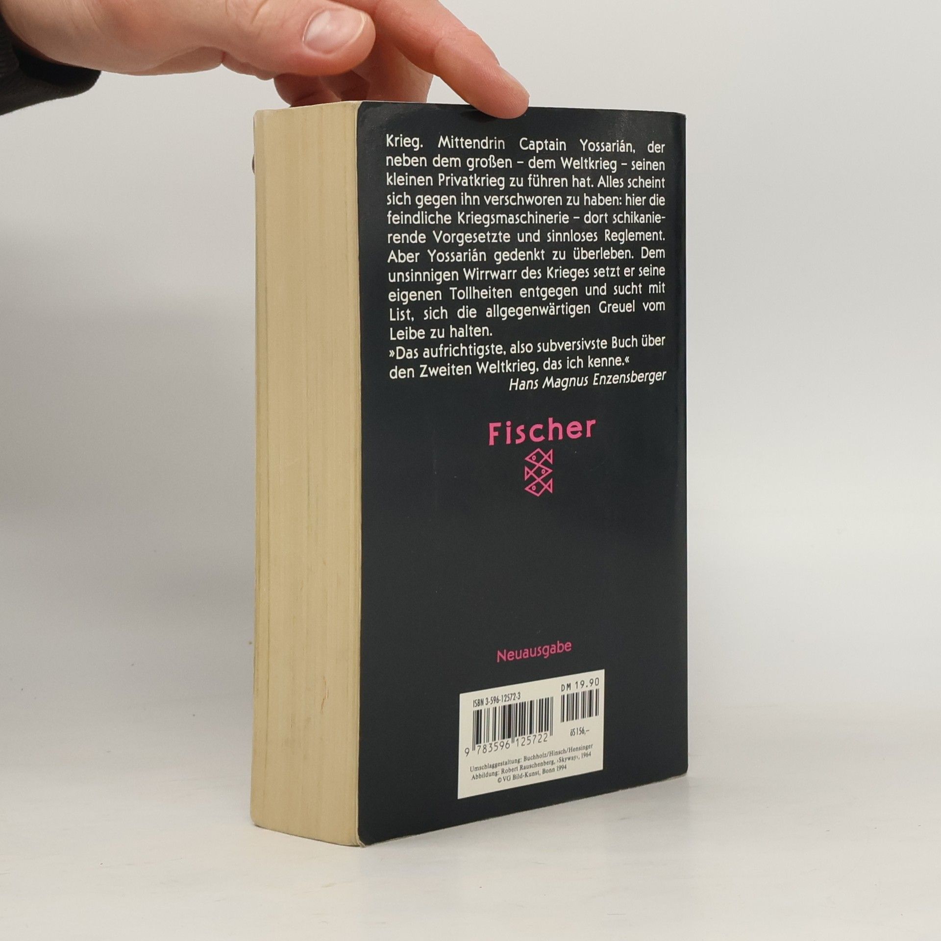 "Catch 22, also Falle 22 oder Trick 22- das ist die ebenso irrsinnige wie ausweglose Dienstanweisung für das amerikanische Bombengeschwader, der zufolge Bomberpilot Yossarian nur dann von weiteren Einsätzen verschont bleibt, wenn er als verrückt anerkannt wird. Verrückt aber kann niemand sein, der sich weigern will, immer weitere großenteils sinnlose Einsätze zu fliegen. Also muß Yossarian ebenso wie seine Kameraden weiterfliegen, obwohl er sich die größte Mühe gibt, als verrückt zu erscheinen. Durch scheinbar absurdes Verhalten der militärischen Maschinerie ihre eigene Absurdität zu demonstrieren. Aber die Kriegsmaschinerie, gespeist aus persönlichem Ehrgeiz, Dummheit, Brutalität und Duckmäuserei, erkennt ihren eigenen Irrsinn nicht in dem Spiegel, den Yossarian - im Grunde der einzig Normale unter lauter Verrückten - vorhält." (fischer)