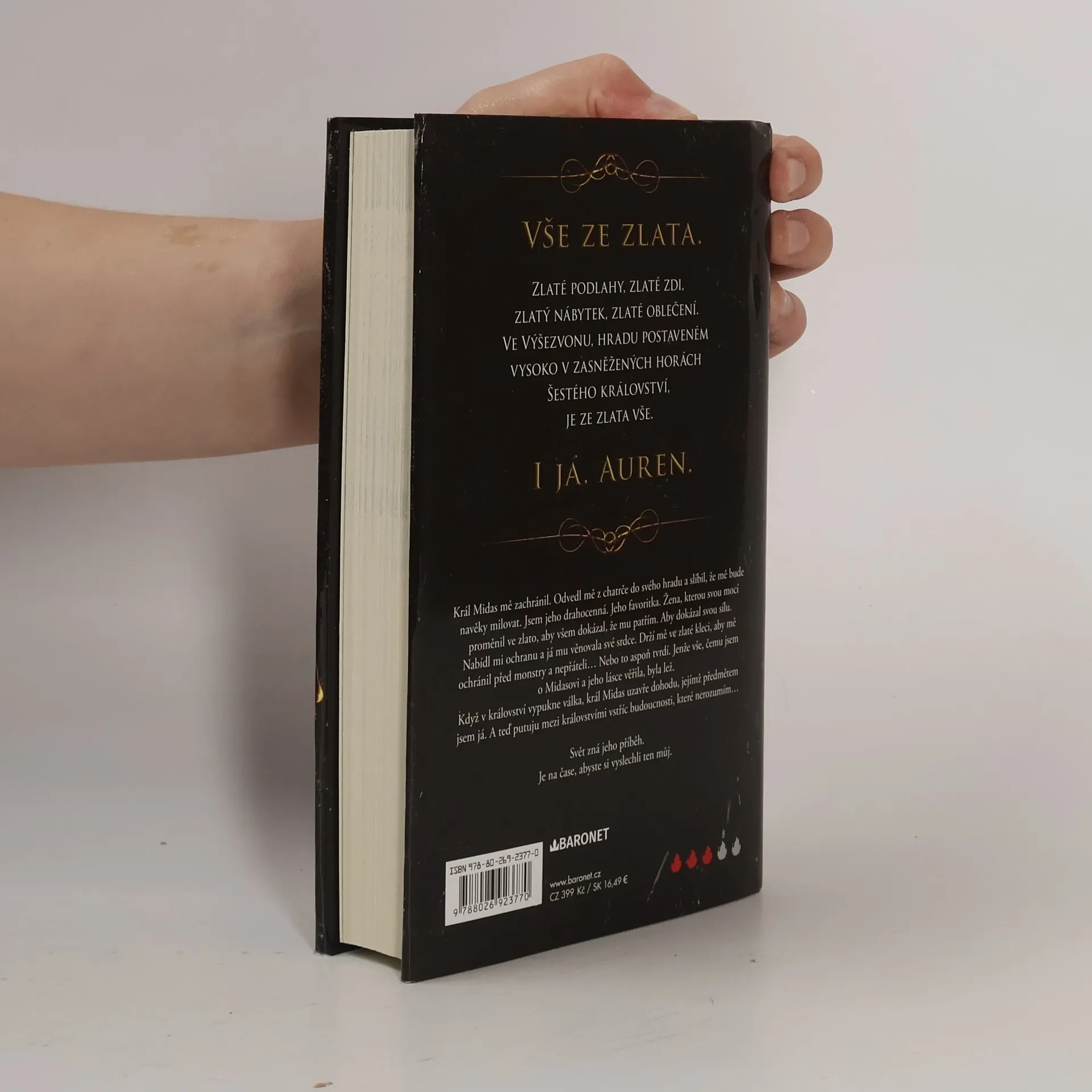 Fantasy romance je úvodní částí pětidílné série, pro kterou se autorka nechala inspirovat řeckou bájí o králi Midasovi. Auren, nová favoritka krále Midase, je zahalena přepychem a ochranou mocného vládce. Z původního přesvědčení o jeho citech je vržena do kruté reality. Je pouhou loutkou v panovníkových mocenských hrách. Záleží jen na ní, jestli dokáže obrátit tuto hru ve svůj prospěch.