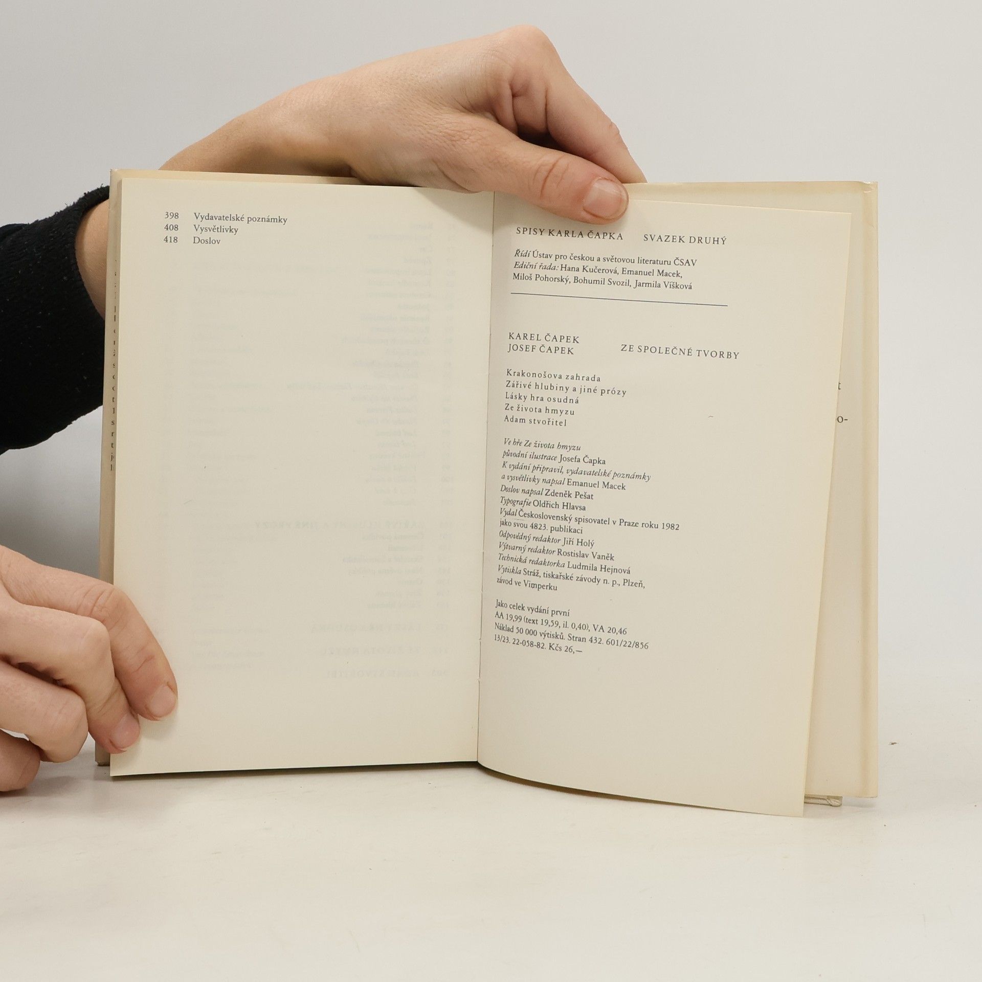 Krakonošova zahrada, Zářivé hlubiny a jiné prózy, Lásky hra osudná, Ze života hmyzu, Adam stvořitel, Karel Čapek
