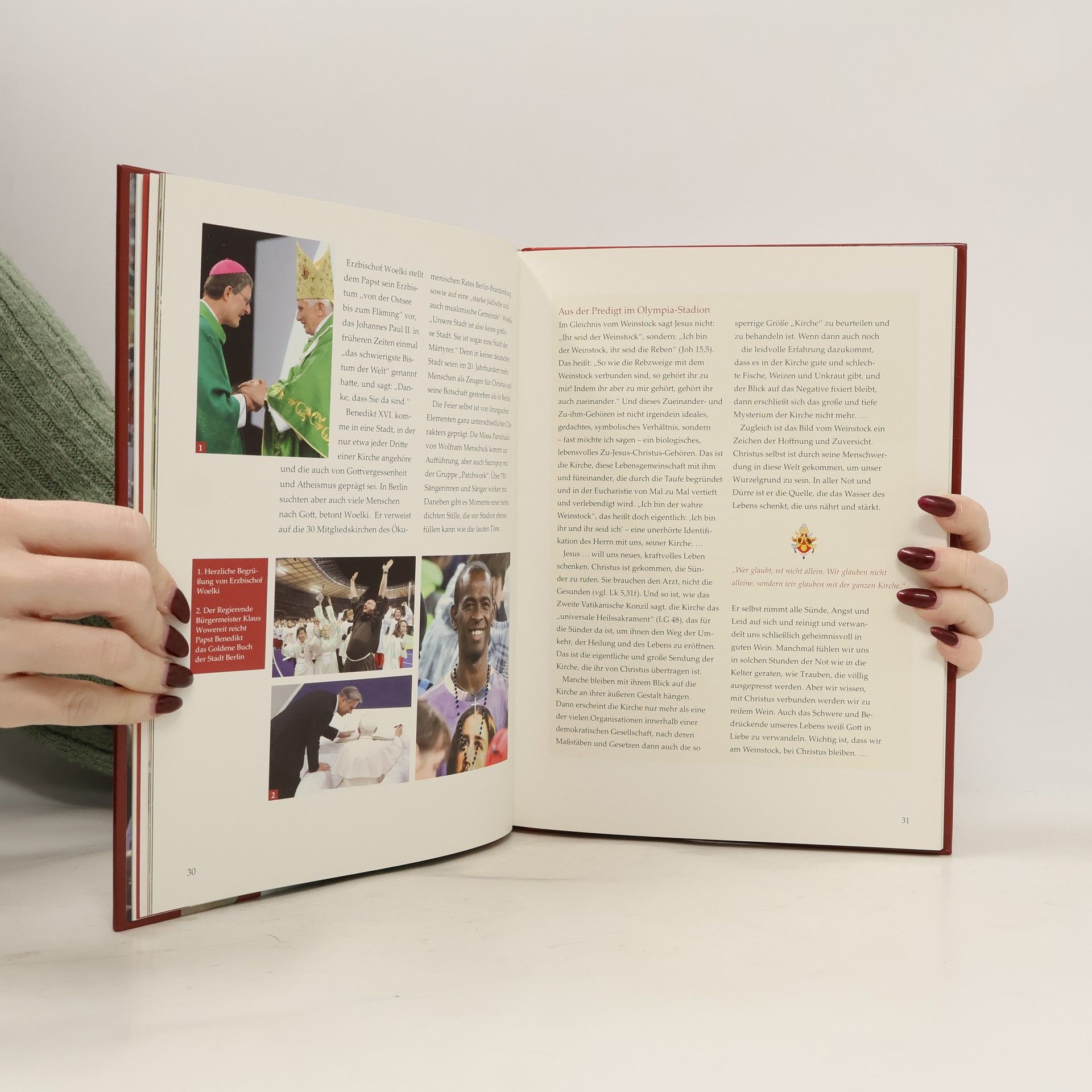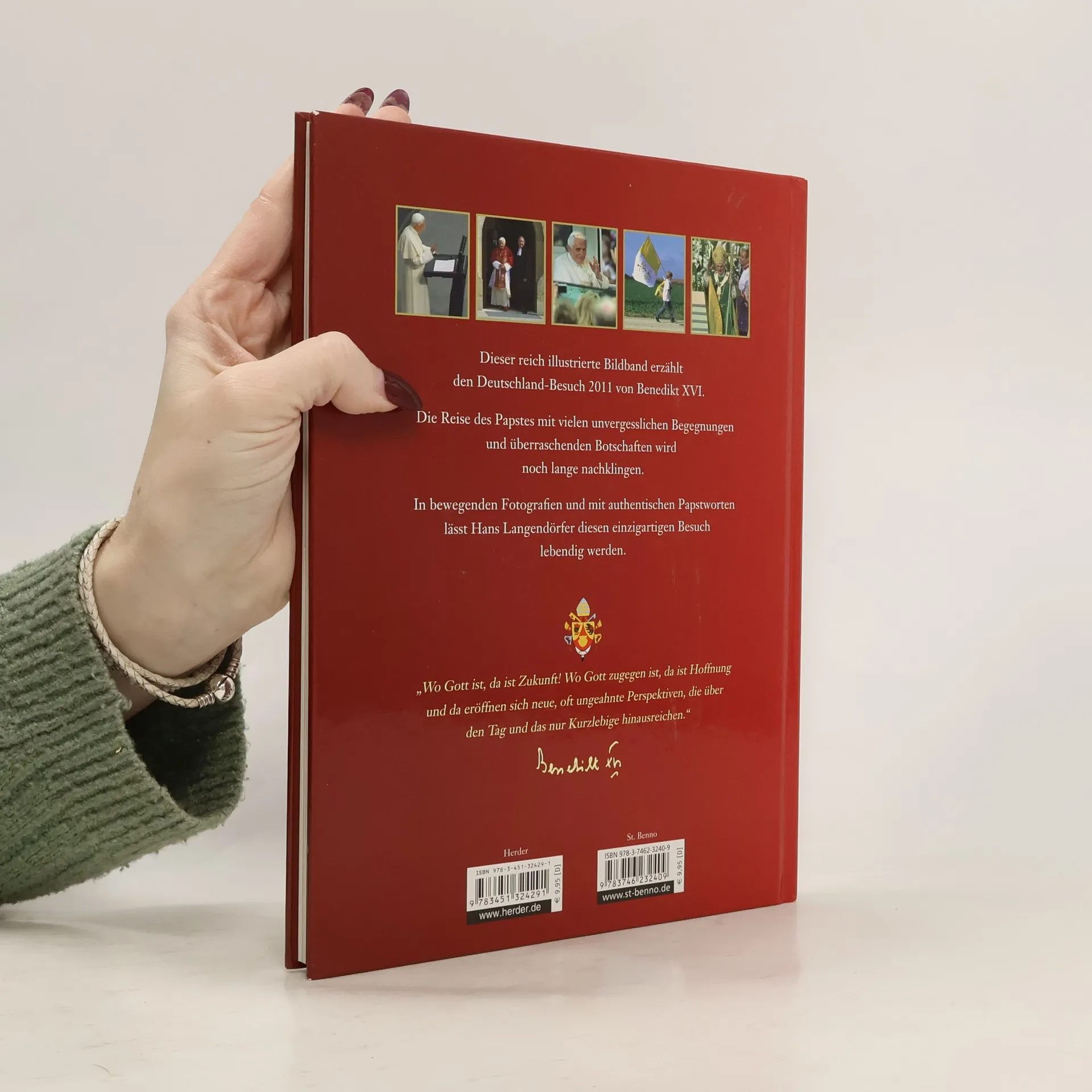 Wenn Papst Benedikt XVI. am 25. September von seinem Staatsbesuch in Deutschland nach Rom zurückkehrt, hat er nicht nur die Bundeshauptstadt, sondern auch die Bistümer Berlin, Erfurt und Freiburg besucht. Er hat vor dem Bundestag gesprochen, hat die Spitzen des Staates getroffen und ist Repräsentanten anderer Religionen begegnet. Auf besonderen eigenen Wunsch bildet das ökumenische Gespräch einen Schwerpunkt der Reise ins Mutterland der Reformation. Mit Hunderttausenden Menschen hat er Gottesdienste gefeiert und sie zu Glauben, Hoffnung und Liebe ermutigt. Brillante Fotografien und markante Texte halten in Wort und Bild die entscheidenden Szenen, Begegnungen und Botschaften fest. Das Buch erscheint wenige Tage nach dem Papstbesuch.