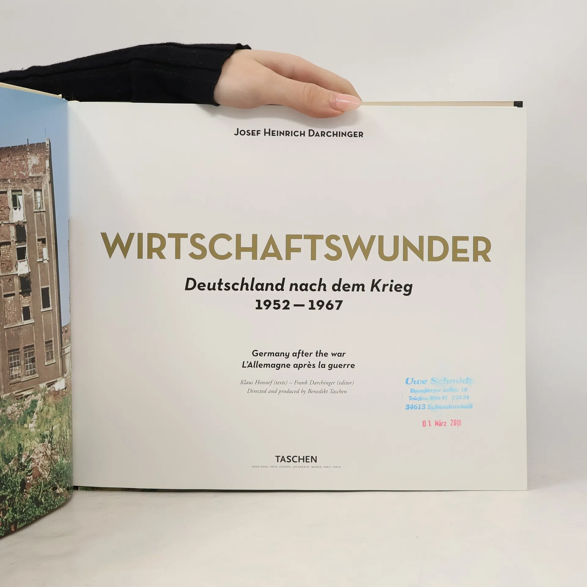 Germany after the war 1952 - 1967. It was no more than eight years after the surrender of the Nazi government when Josef Heinrich Darchinger set out on his photographic journey through the West of a divided Germany. The bombs of World War II had reduced the country's major cities to deserts of rubble. Yet his pictures show scarcely any signs of the downfall of a civilization. Not that the photographer was manipulating the evidence: he simply recorded what he saw. At the time, a New York travel agency was advertising the last opportunity to go and visit the remaining bomb sites. Darchinger's pictures, in color and black-and-white, show a country in a fever of reconstruction. The economic boom was so incredible that the whole world spoke of an "economic miracle." The people who achieved it, in contrast, look down-to-earth, unassuming, conscientious, and diligent. And increasingly, they look like strangers in the world they have created.