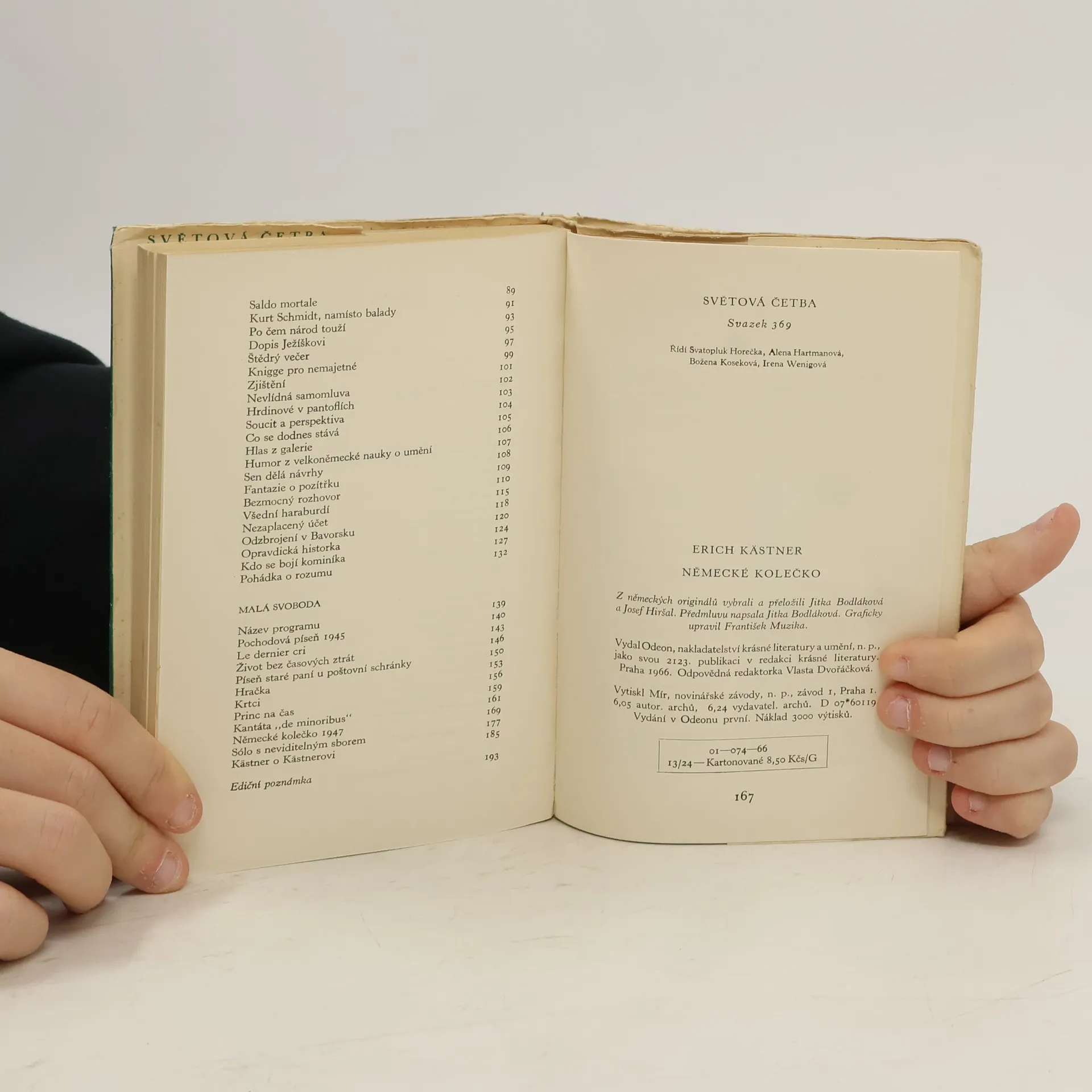 Německý spisovatel, známý téměř výhradně jako autor humoristických románů a knih pro děti, je tentokrát připomenut v zcela jiné podobě: jako autor básní a krátkých povídek, vesměs útočných a užívajících vzácného daru satiry ve službě boje o lepšího člověka a společnost. Zněmeckého originálů vybrali a přeložili Jitka Bodláková a Josef Hiršal. Předmluvu Básník písní o malém člověku napsala Jitka Bodláková.