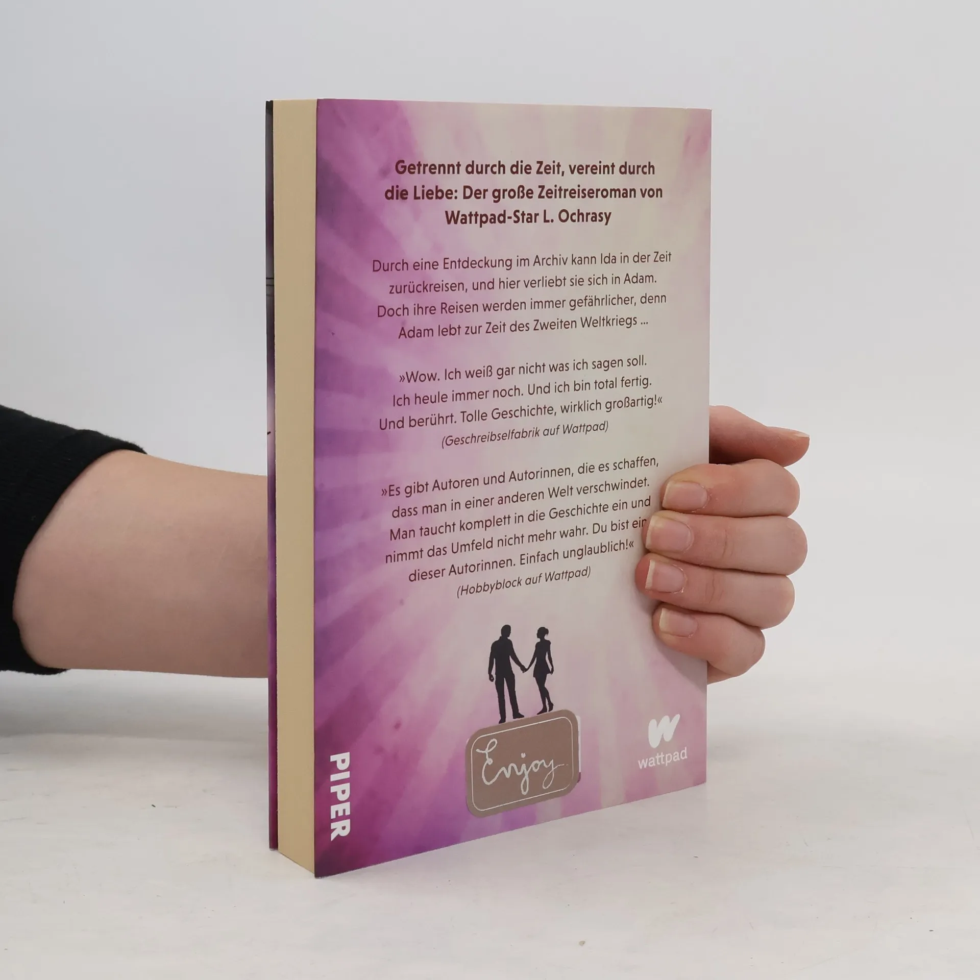Wenn die Liebe schlechtes Timing hat: der große Zeitreiseroman von Wattpad-Star L. Ochrasy »Und dann sagte ich einen Satz, den ich selbst von mir nie erwartete hätte. ›Ich habe lieber kein Leben als so ein Leben.‹« Adam lebt im Jahr 1942, Ida im Jahr 2016. Durch eine zufällige Entdeckung während ihres Studiums kann Ida in der Zeit zurückreisen. So lernt sie Adam kennen und lieben. Doch ihre Reisen zu ihm werden zunehmend gefährlich, denn um ihn herum tobt der zweite Weltkrieg. Ida ist bereit ihr Leben zu riskieren, um ihn zu retten. Ihr Weg führt sie dabei durch einen bitteren Winter voller Hunger und Krankheit. Doch sie gibt nicht auf, für die Liebe zu kämpfen. Für alle Leser*innen von Kerstins Gier »Edelsteintrilogie« und Markus Zusaks »Die Bücherdiebin« Wattpad verbindet eine Gemeinschaft von rund 90 Millionen Leser*innen und Autor*innen durch die Macht der Geschichte und ist damit weltweit die größte Social Reading-Plattform. Bei Wattpad@Piper erscheinen nun die größten Erfolge in überarbeiteter Version als Buch und als E-Book: Stoffe, die bereits hunderttausende von Leser*innen begeistert haben, durch ihren besonderen Stil beeindrucken und sich mit den Themen beschäftigen, die junge Leser*innen wirklich bewegen!
