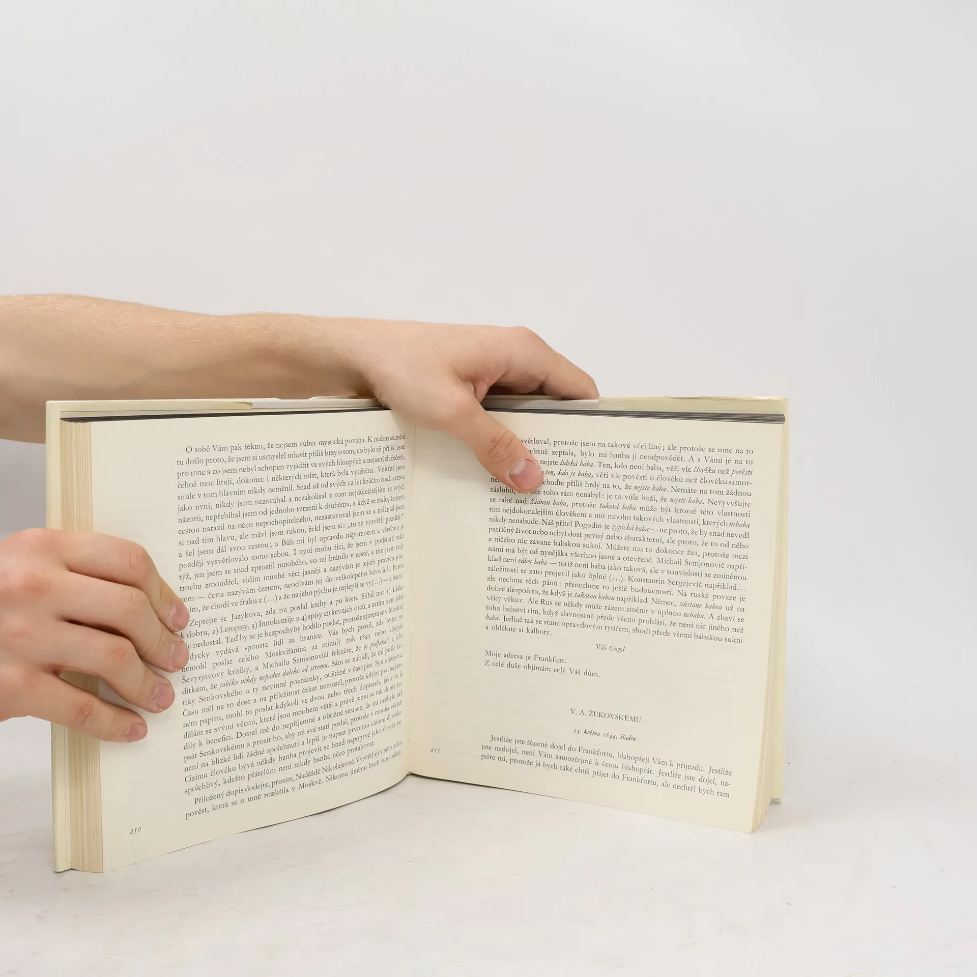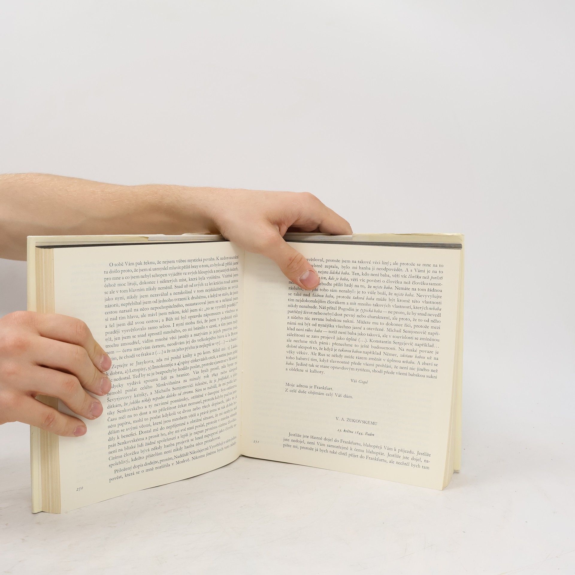 Výběr z Gogolovy korespondence, ze zápisků a črt, z dokumentů o jeho životě a tvorbě a ze vzpomínek a dopisů současníků o jeho osobnosti. Dokumenty podávají výpověď o Gogolově boji s carismem, o jeho boji s dobovou publicistikou, zachycují vnitřní drama jeho osobnosti, odhalují jeho láskuk životu a úctu k prostotě.