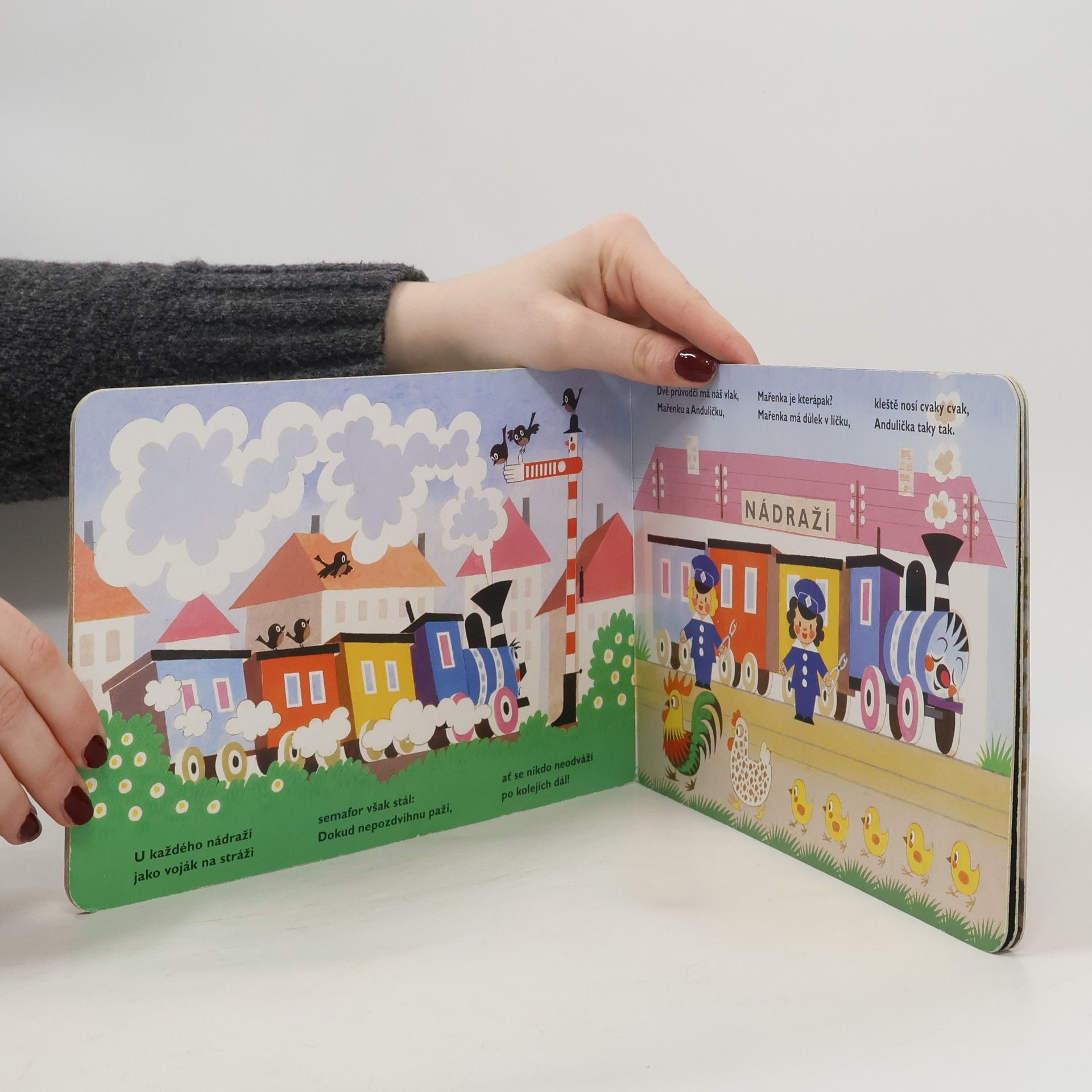 Oblíbené leporelo s verši, klasika české poezie pro děti. Veselá mašinka provází malé čtenáře po nádražích, vypravuje o průvodčích a strojvedoucím, o semaforu a výhybkách, o kolejnicích a železném mostu i o zaslouženém odpočinku po dlouhé cestě. Pro děti od dvou let.