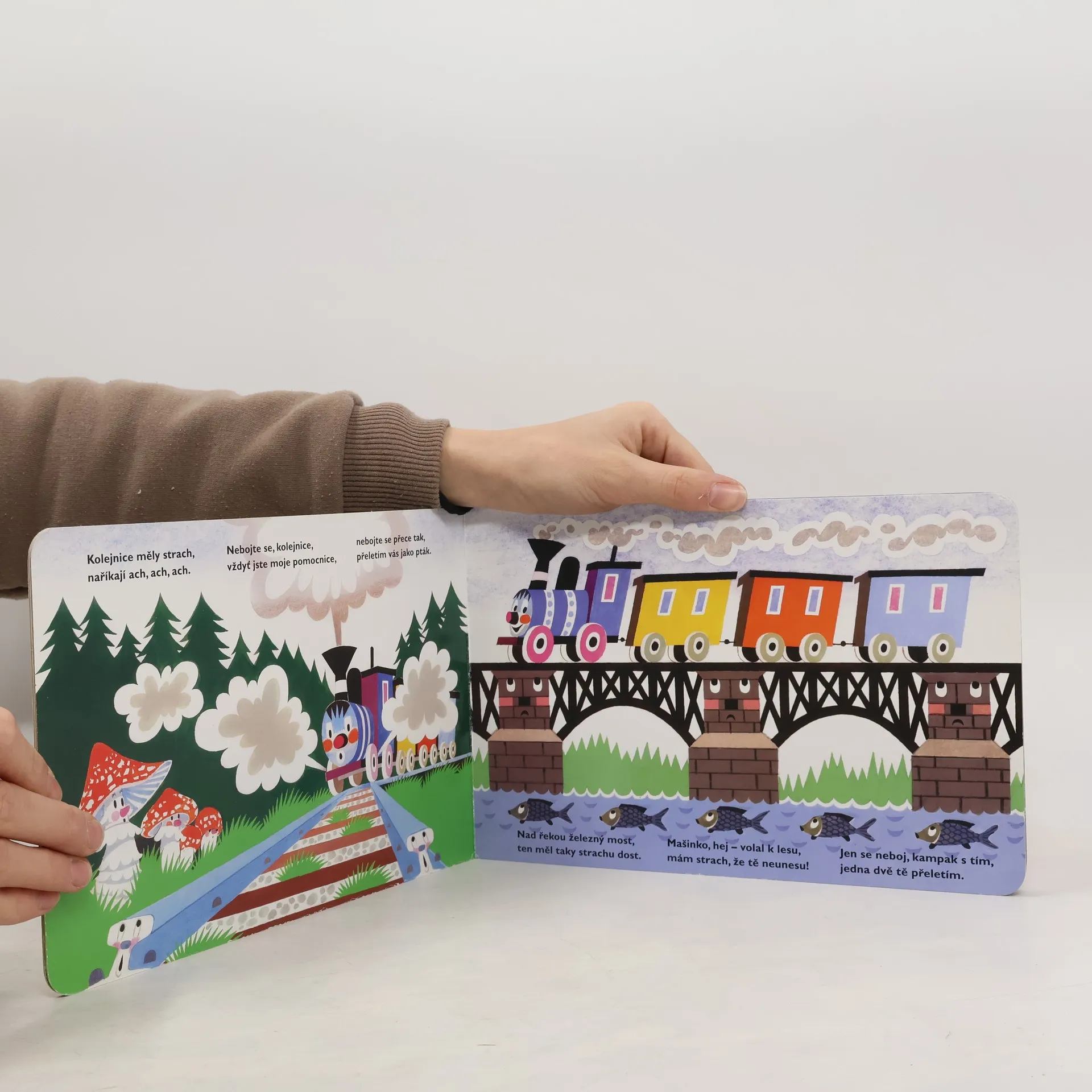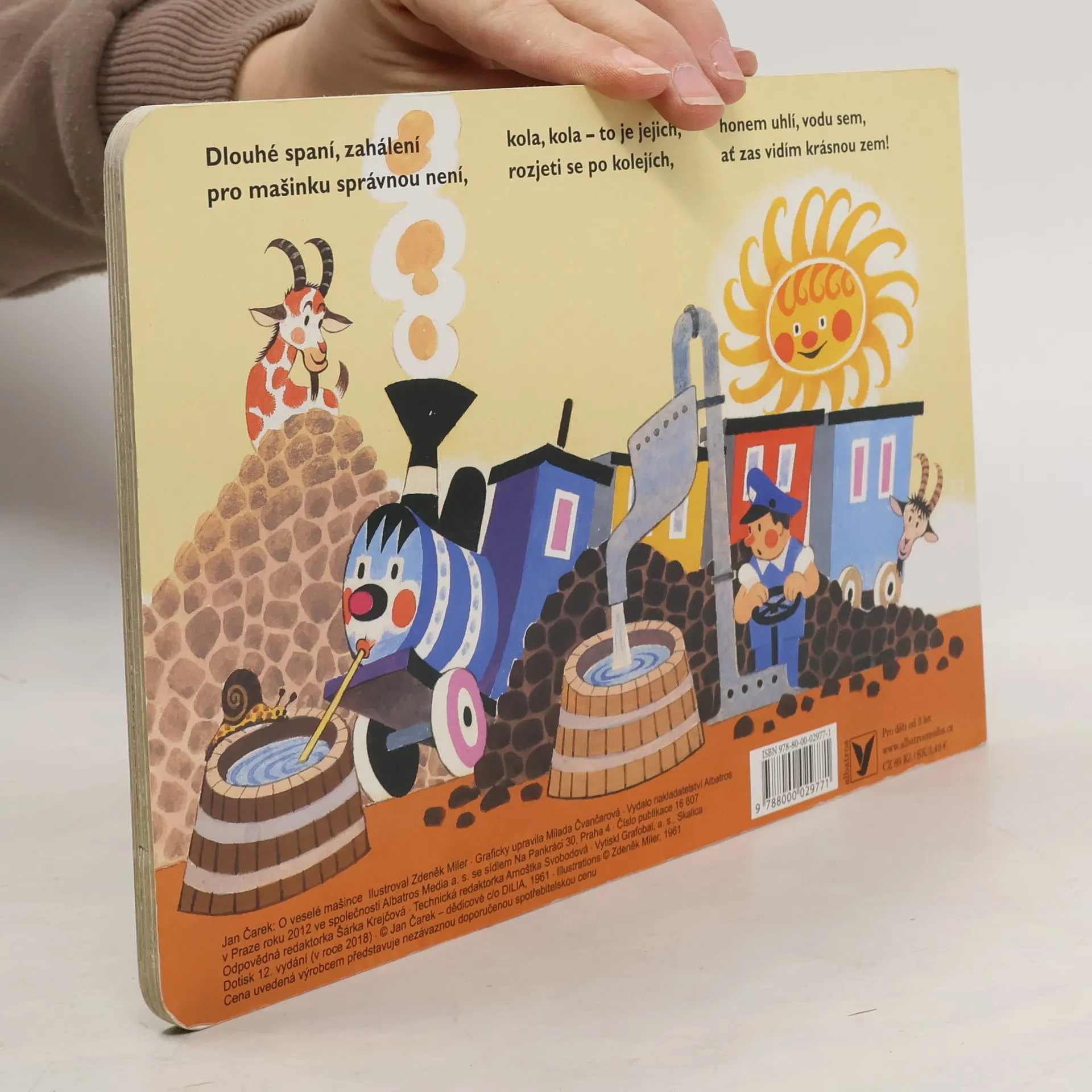 Oblíbené leporelo s verši, klasika české poezie pro děti. Veselá mašinka provází malé čtenáře po nádražích, vypravuje o průvodčích a strojvedoucím, o semaforu a výhybkách, o kolejnicích a železném mostu i o zaslouženém odpočinku po dlouhé cestě. Pro děti od dvou let.
