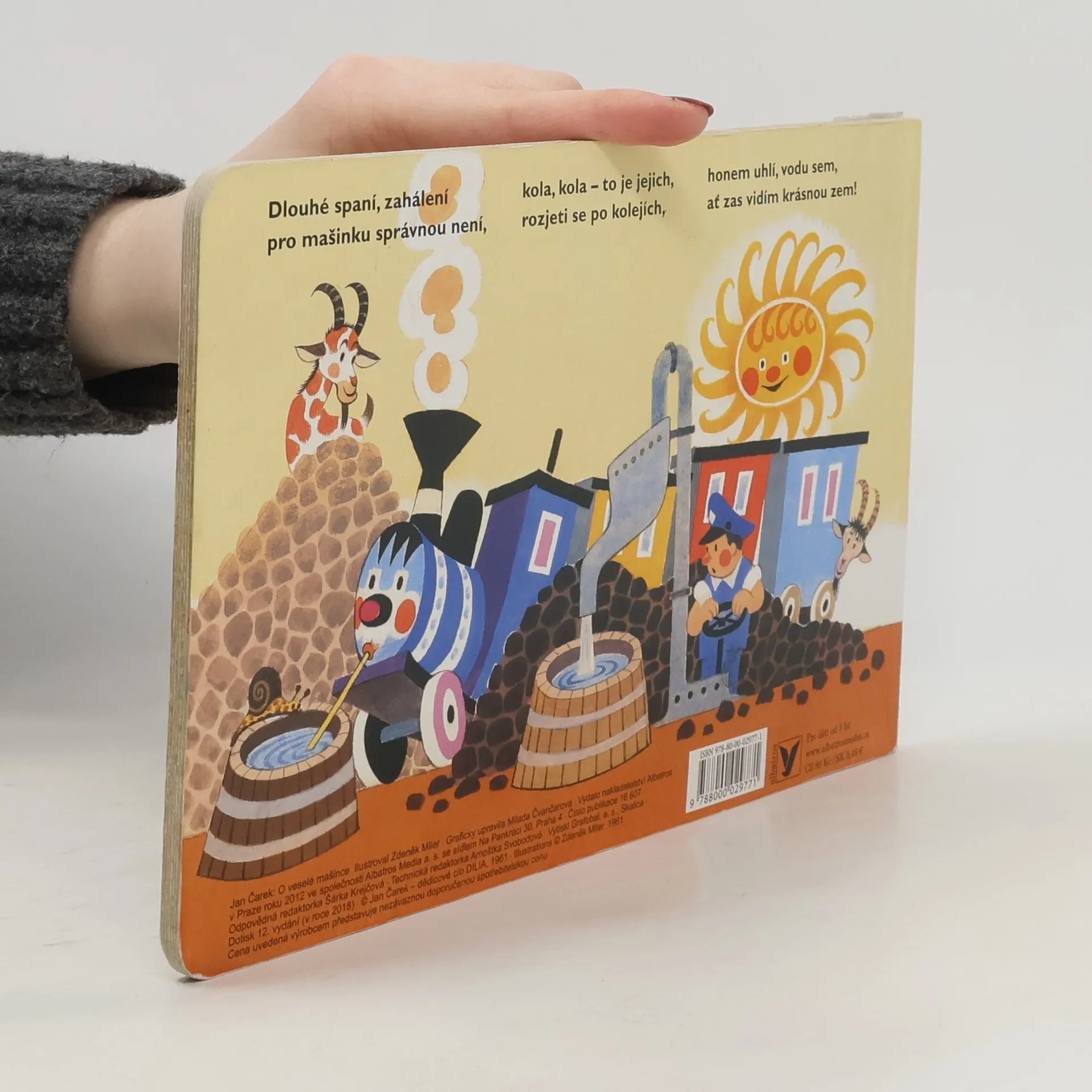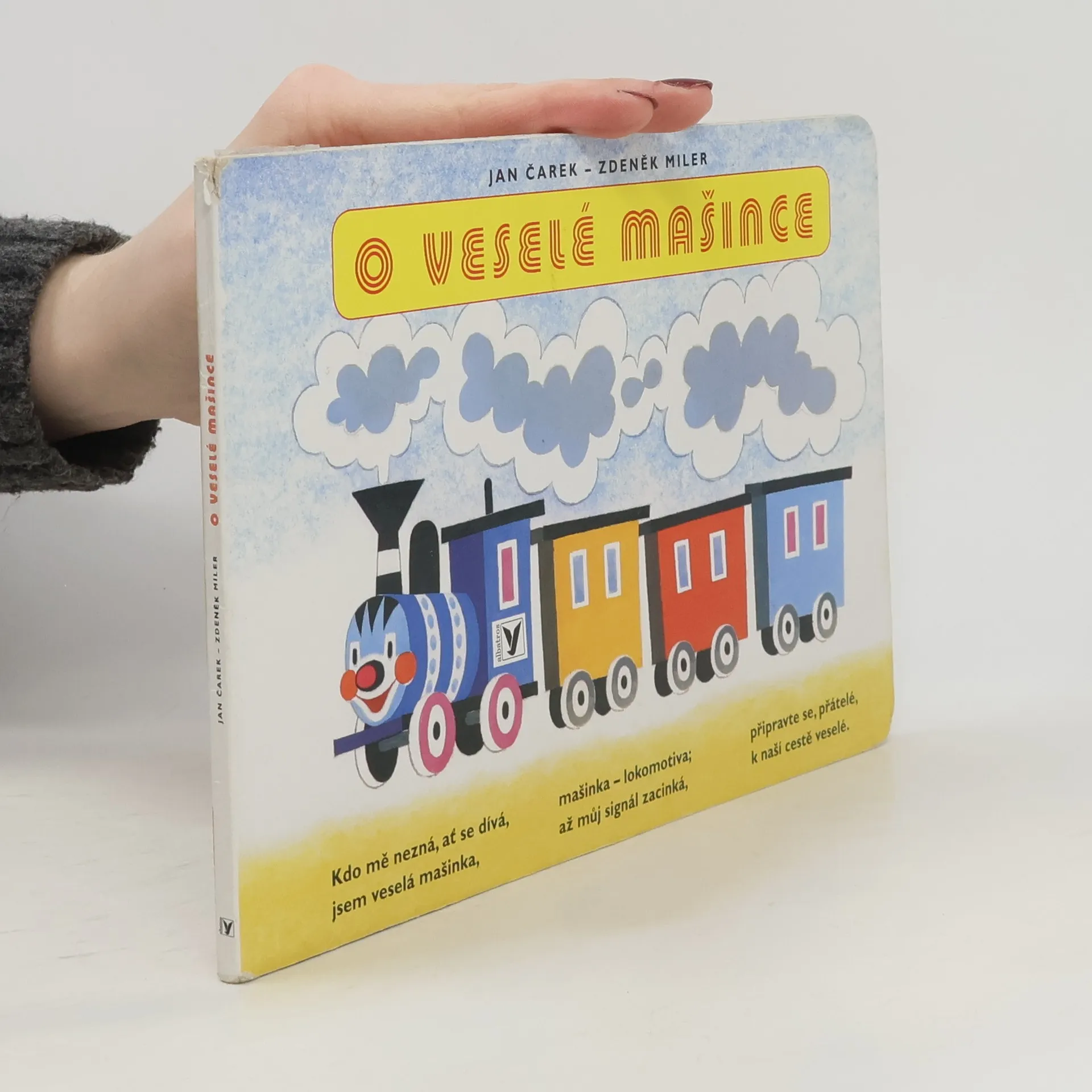 Oblíbené leporelo s verši, klasika české poezie pro děti. Veselá mašinka provází malé čtenáře po nádražích, vypravuje o průvodčích a strojvedoucím, o semaforu a výhybkách, o kolejnicích a železném mostu i o zaslouženém odpočinku po dlouhé cestě. Pro děti od dvou let.