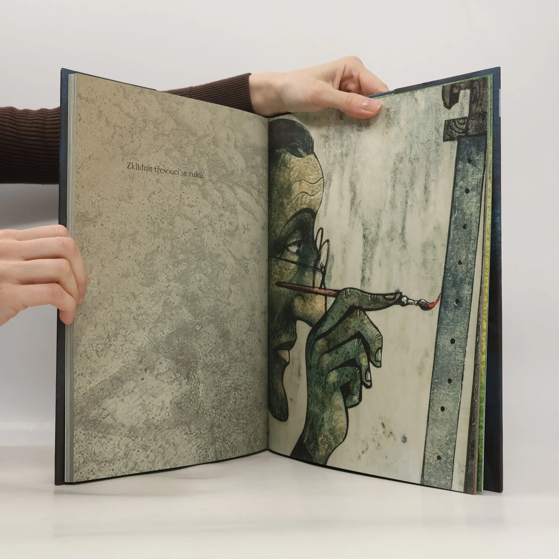 Autorská kniha brněnského výtvarníka Pavla Čecha inspirovaná Písní o malíři od Petra Rady, známá v podání Hany Hegerové. Zamknul se ve svém podkroví sám se svým terpentýnem. Když potom vyšel, to se ví, sám sobě mohl být stínem. Pod paží nesl na provázku portrét tak zvláštní divné krásy. Zmohla jsem se jen na otázku, kdopak to je, kde žije asi. Vydechl tiše do mrazu větu jež spát mi nedá. Člověka k svému obrazu v ulicích teprv hledá. (Úryvek textu z Písně o malíři)