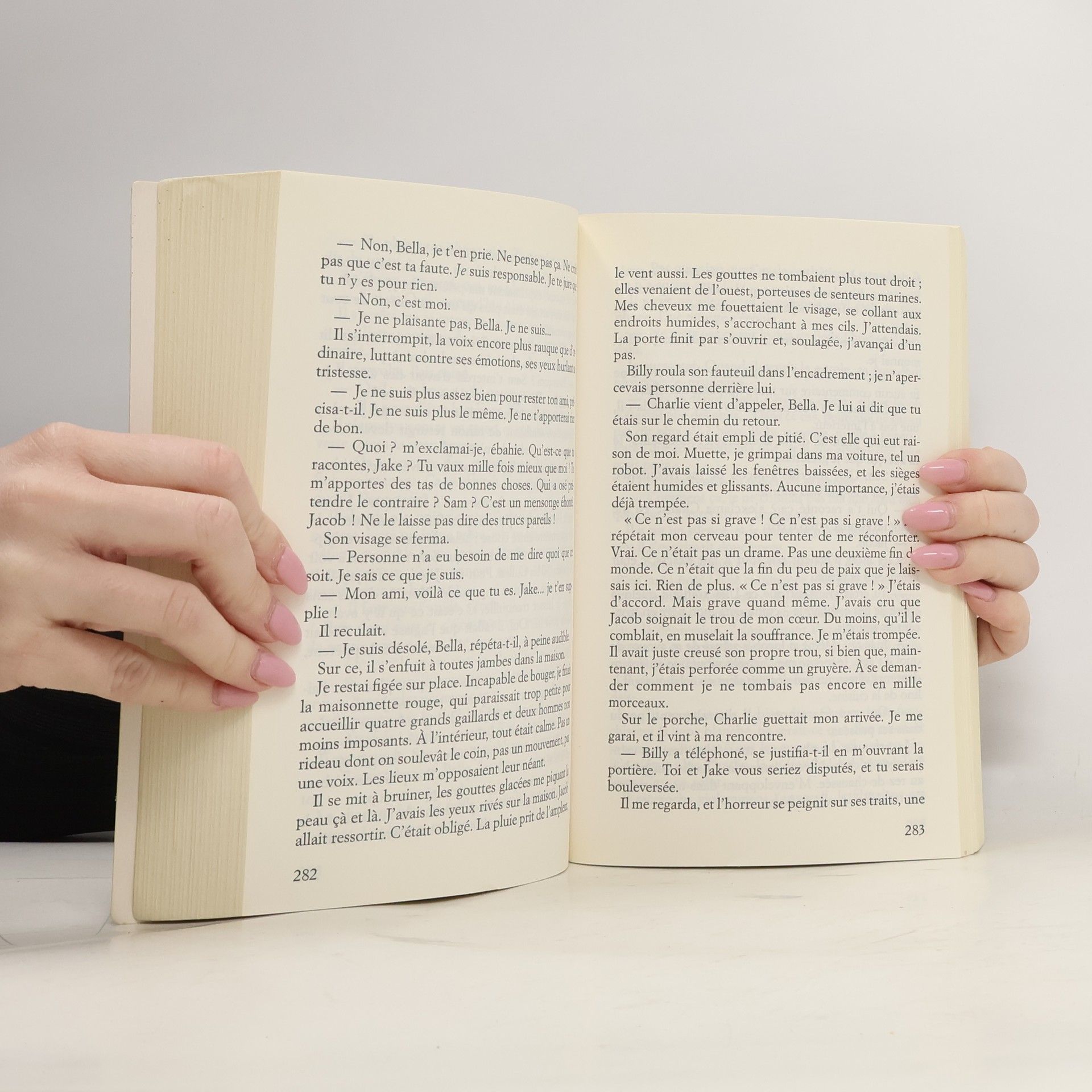 "Tu ne me reverras plus. Je ne reviendrai pas. Poursuis ta vie, je ne m'en mêlerai plus. Ce sera comme si je n'avais jamais existé." Rejetée par celui qu'elle aime passionnément, Bella ne s'en relève pas. Fascinée par un vampire, comment pourrait-elle retrouver goût à la pâle existence humaine? Pourtant il faut vivre. Mais Bella n'a de goût pour rien, sinon le danger : alors elle entend la voix d'Edward, et éprouve l'illusion de sa présence. Comme s'il ne l'avait pas abandonnée, comme s'il tenait encore à elle. Bella échappera-t-elle à cette obsession amoureuse qui la hante? A quel prix?
