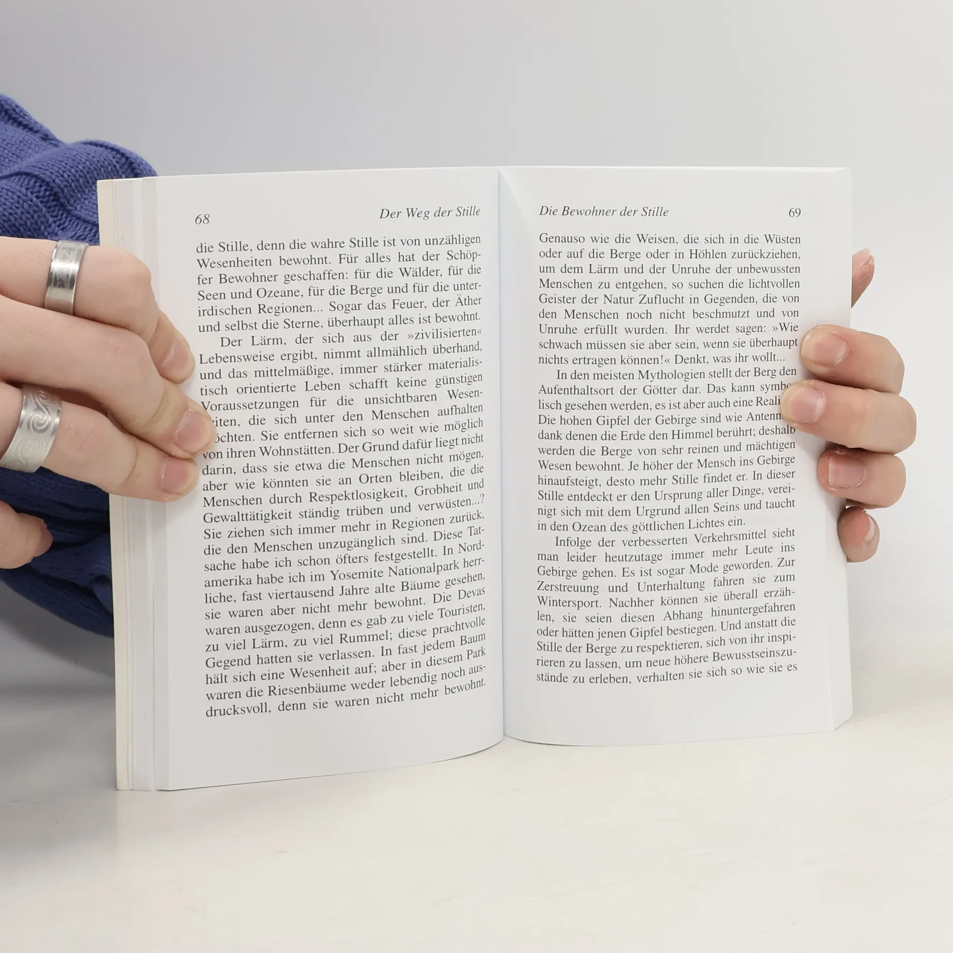 Wer glaubt, die Stille spiegle nichts anderes als die Einöde wieder, die Leere, das Ausbleiben jeder Aktivität, jedes Schaffens, mit einem Wort das Nichts, täuscht sich sehr! Stille ist nicht immer gleich Stille, allgemein gesprochen gibt es zweierlei Stille; die Stille des Todes und die des höheren Lebens. Eben diese Stille des höheren Lebens sollte man begreifen und von ihr ist hier die Rede. Diese Stille hat mit Trägheit nichts zu tun; sie ist im Gegenteil ein Schaffen, eine intensive Tätigkeit, die sich in tiefer Harmonie abspielt. Diese Stille stellt auch keine Leere, keinen Mangel dar, sondern eine Fülle, eine ähnliche Fülle, die zwei einander tief liebende Menschen spüren: diese erlebte Liebe ist so tief dass sie sie weder durch Gesten noch Worte veranschaulichen können. Die Stille ist eine Eigenschaft des Innenlebens.