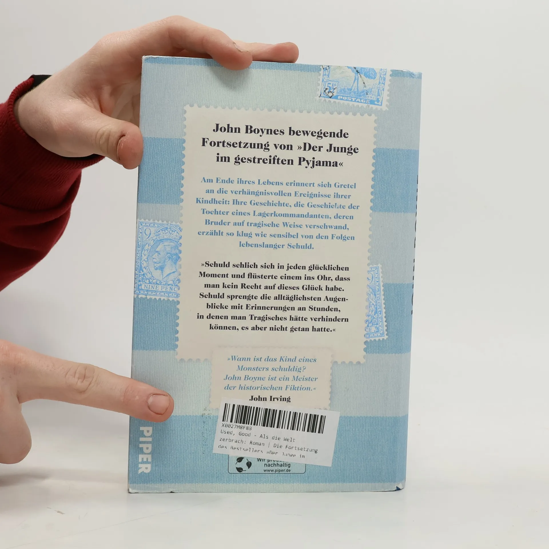 Die Fortsetzung des Weltbestsellers »Der Junge im gestreiften Pyjama« Gretel Fernsby lebt seit Jahrzehnten in ihrer Londoner Wohnung. Sie führt ein ruhiges Leben, trotz ihrer dunklen Vergangenheit. Über ihre Flucht aus Deutschland vor über siebzig Jahren spricht sie nicht. Vor allem aber verliert sie kein Wort über ihren Vater, der Kommandant in einem Konzentrationslager war. Als eine junge Familie in die Wohnung unter ihr zieht, weckt der neunjährige Henry Erinnerungen, die sie lieber vergessen würde. Eines Nachts wird sie Zeugin eines Streits zwischen Henrys Mutter und dem jähzornigen Vater. Ein Streit, der Gretels hart erkämpfte, zurückgezogene Existenz bedroht. Sie bekommt die Chance, ihre Schuld zu sühnen und den Jungen zu retten. Doch dazu muss sie offenbaren, was sie ein Leben lang verschwiegen hat ... John Boyne erzählt in seinem Roman vom Leben mit der Schuld und dem Ende der Zeitzeugenschaft. »Der Roman, in dem mosaiksteinhaft ein Leben bilanziert wird, wandelt sich am Ende noch rasant zum Krimi.« rbb Kultur, Der Morgen »John Boyne ist ein Meister der historischen Fiktion.« John Irving »Boynes Buch ist sowohl Geschichtsstunde als auch die fesselnde Biografie einer Frau, die exemplarisch für so viele Menschen einer Generation in Deutschland steht, die es bald nicht mehr gibt.« Madame