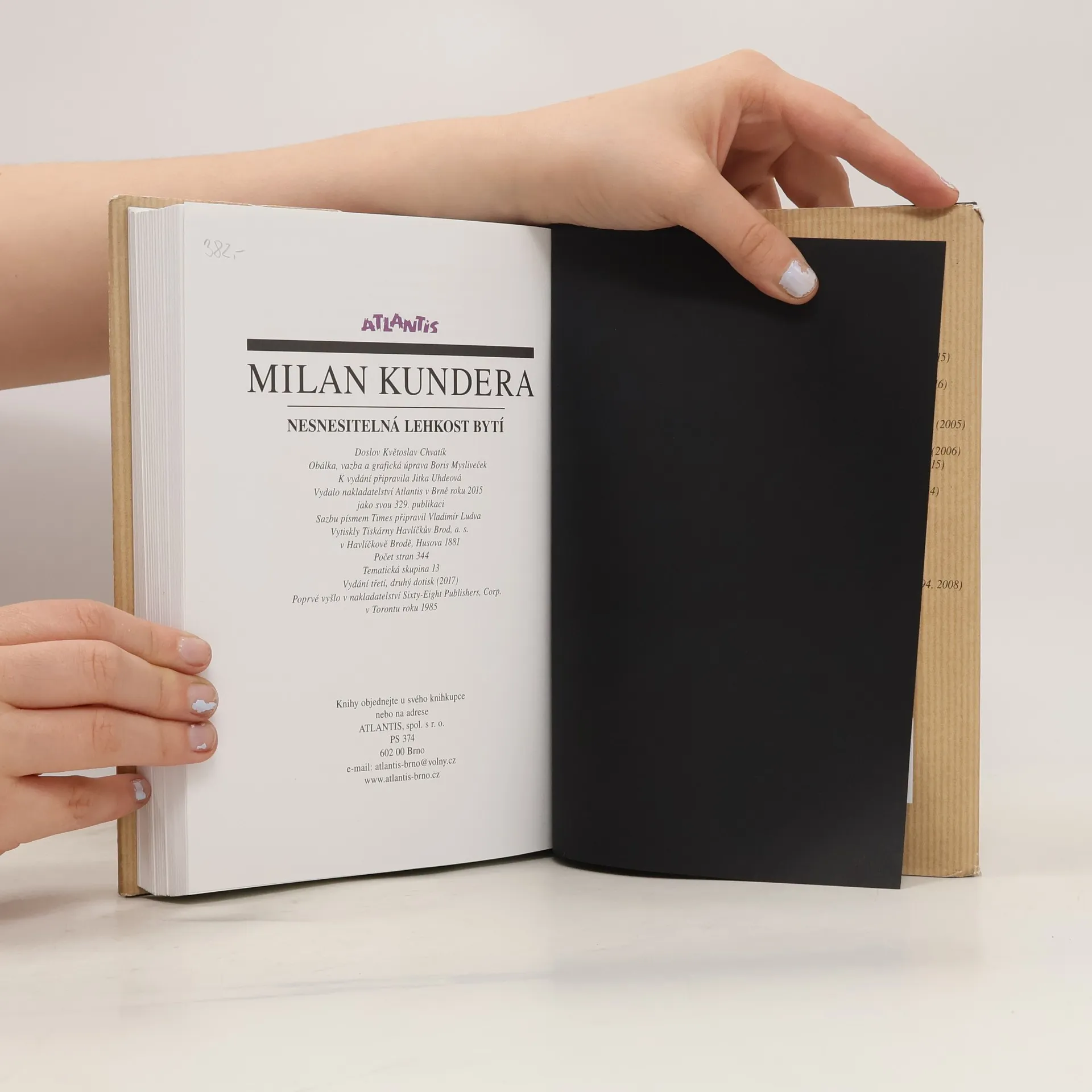Filozoficky výrazně zabarvený román je příběhem českého emigranta, který po roce 1968 odešel ze země a později se zcela impulzivně v době normalizace vrátil a autor v něm detailně zkoumá vztah člověka k realitě a jeho schopnosti vytvářet mýty. První, exilové vydání. Obálku s použitím obrazu Josefa Istlera navrhla Barbora Munzarová. Grafická úprava Věra Držmíšková.