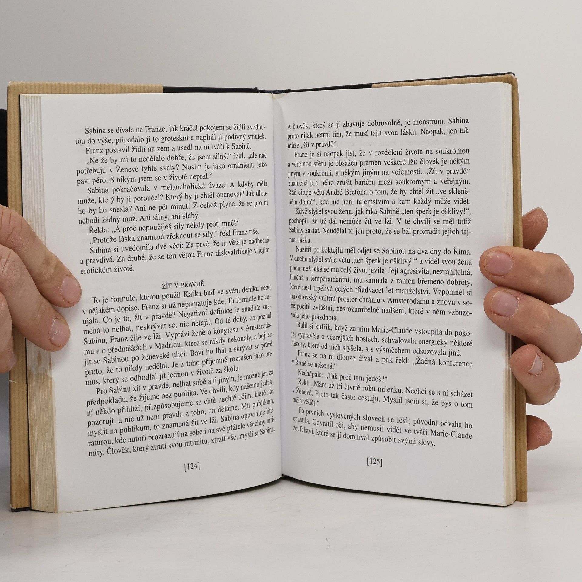 Slavný román Milana Kundery vychází poprvé v České republice; s obvyklou Poznámkou autora a s doslovem Květoslava Chvatíka. Poprvé vyšel ve francouzském překladu v roce 1984 v Paříži u Gallimarda, v roce 1985 česky v Kanadě v nakladatelství Sixty-Eight Publishers. Vyprávění o lásce, o Tereze a Tomášovi, o Sabině a Franzovi, o lehkosti a tíze bytí... „Po čtyřech letech strávených v Ženevě ubytovala se Sabina v Paříži a nemohla se vzpamatovat z melancholie. Kdyby se jí někdo ze ptal, co se jí stalo, nenašla by pro to slov. Životní drama se dá vždycky vyjádřit metaforou tíže. Říkáme, že na člověka dopadlo nějaké břemeno. Člověk to břemeno unese nebo neunese, padá pod ním, zápasí s ním, prohrává nebo vítězí. Ale co se vlastně stalo Sabině? Nic. Opustila jednoho muže, protože ho chtěla opustit. Pronásledoval ji pak? Mstil se jí? Ne. Její drama nebylo dramatem tíhy, ale lehkosti. Na Sabinu dopadlo nikoli břemeno, ale nesnesitelná lehkost bytí.“