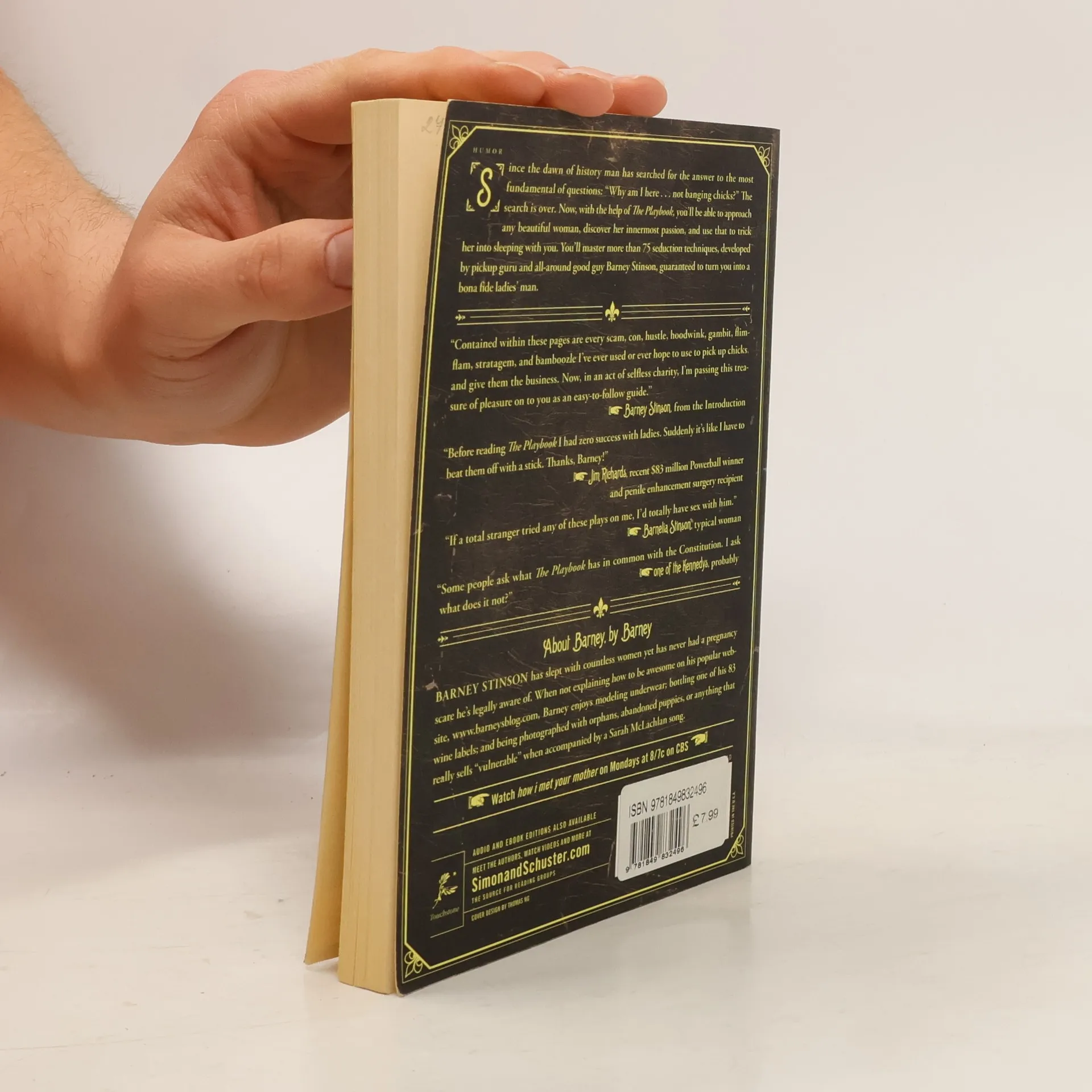 It. Is. On. From the pen of the prolific (and bestselling) author Barney Stinson comes the indispensable guide for every Bro looking to score with The Ladies. Featuring the famous plays including: -The Lorenzo Von Matterhorn -Mrs. Stinsfire -The Ted Mosby -The Time Traveller -The 'SNASA' -The Scuba Diver -The 'He's Not Coming' ... and other greatest hits from Barney Stinson's secretPlaybookof legendary moves. So suit up and get ready to be schooled in awsomeness.