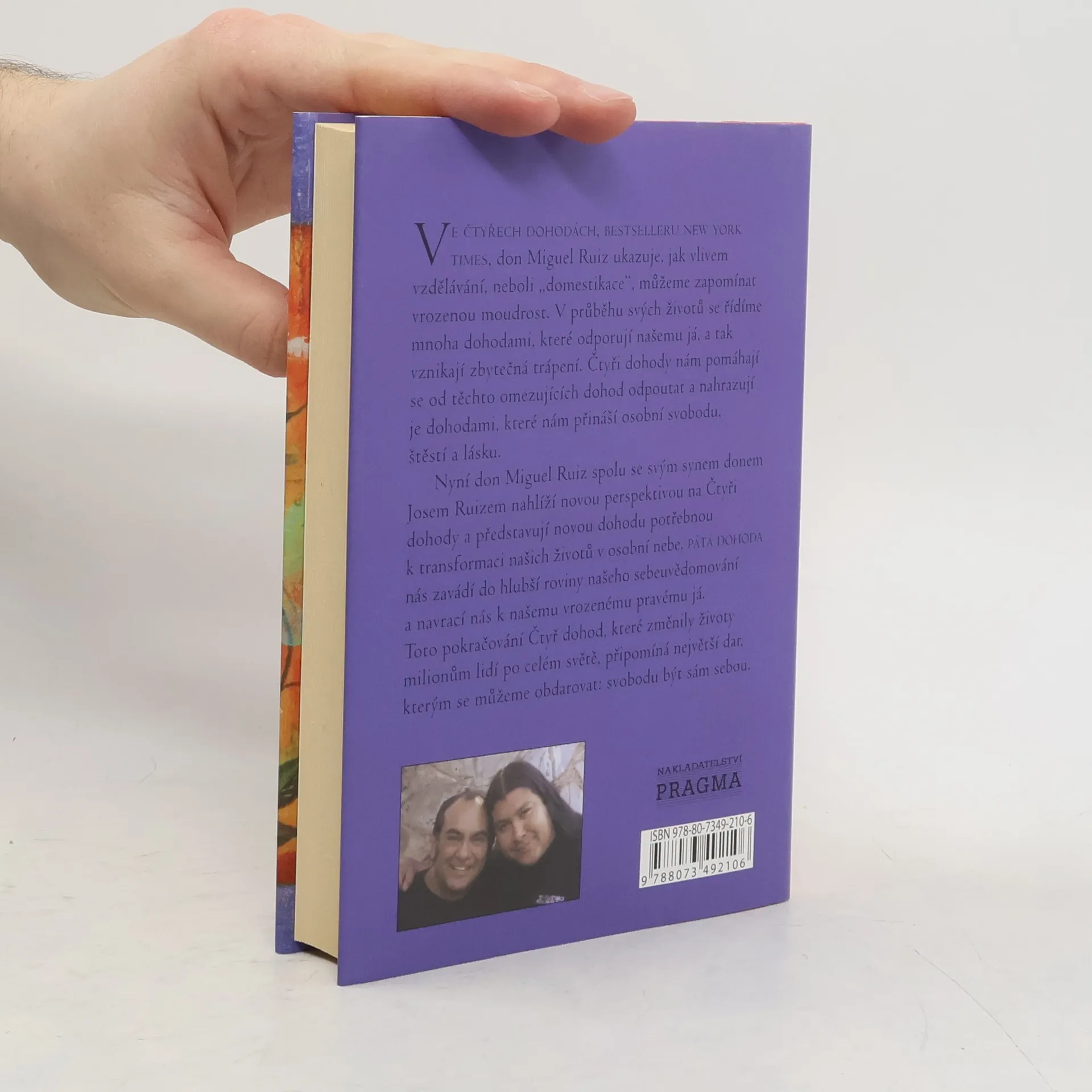 Po několika letech od vydání bestselleru Čtyři dohody vychází kniha Pátá dohoda. Don Miguel Ruiz v ní spolu se svým synem donem Josem Ruizem nabízí nový pohled na Čtyři dohody. Čtyři dohody, založené na staré toltécké moudrosti, nám pomohly prolomit naše omezující přesvědčení a nahradit je názory, které nám přináší osobní svobodu, štěstí a lásku. Výsledkem praktikování páté dohody je naprosté přijetí sebe sama takových, jací jsme, a naprosté přijetí všech ostatních lidí takových, jací jsou. Pátá dohoda chce přinést lidem na celém světě svobodu být sami sebou.