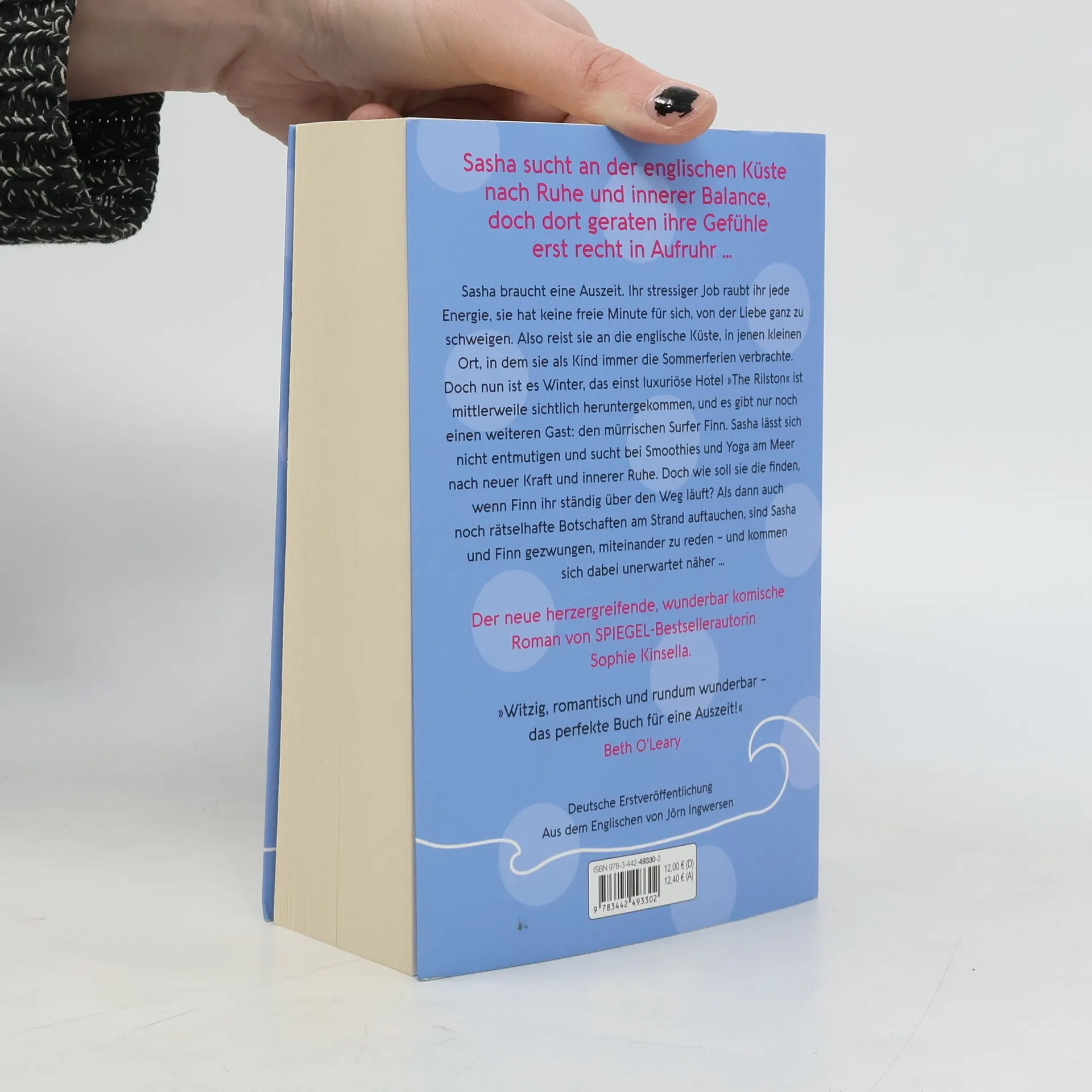 Der neue herzergreifende, wunderbar komische Roman von SPIEGEL-Bestsellerautorin Sophie Kinsella. Sasha braucht eine Auszeit. Ihr stressiger Job raubt ihr jede Energie, sie hat keine freie Minute für sich, von der Liebe ganz zu schweigen. Also reist sie an die englische Küste, in jenen kleinen Ort, in dem sie als Kind immer die Ferien verbrachte. Doch nun ist es Winter, das einst luxuriöse Hotel »The Rilston« ist mittlerweile sichtlich heruntergekommen, und es gibt nur noch einen weiteren Gast: den mürrischen Surfer Finn. Sasha lässt sich nicht entmutigen und sucht bei Smoothies und Yoga am Meer nach neuer Kraft und innerer Ruhe. Doch wie soll sie die finden, wenn Finn ihr ständig über den Weg läuft? Als dann auch noch rätselhafte Botschaften am Strand auftauchen, sind Sasha und Finn gezwungen, miteinander zu reden – und kommen sich dabei unerwartet näher …