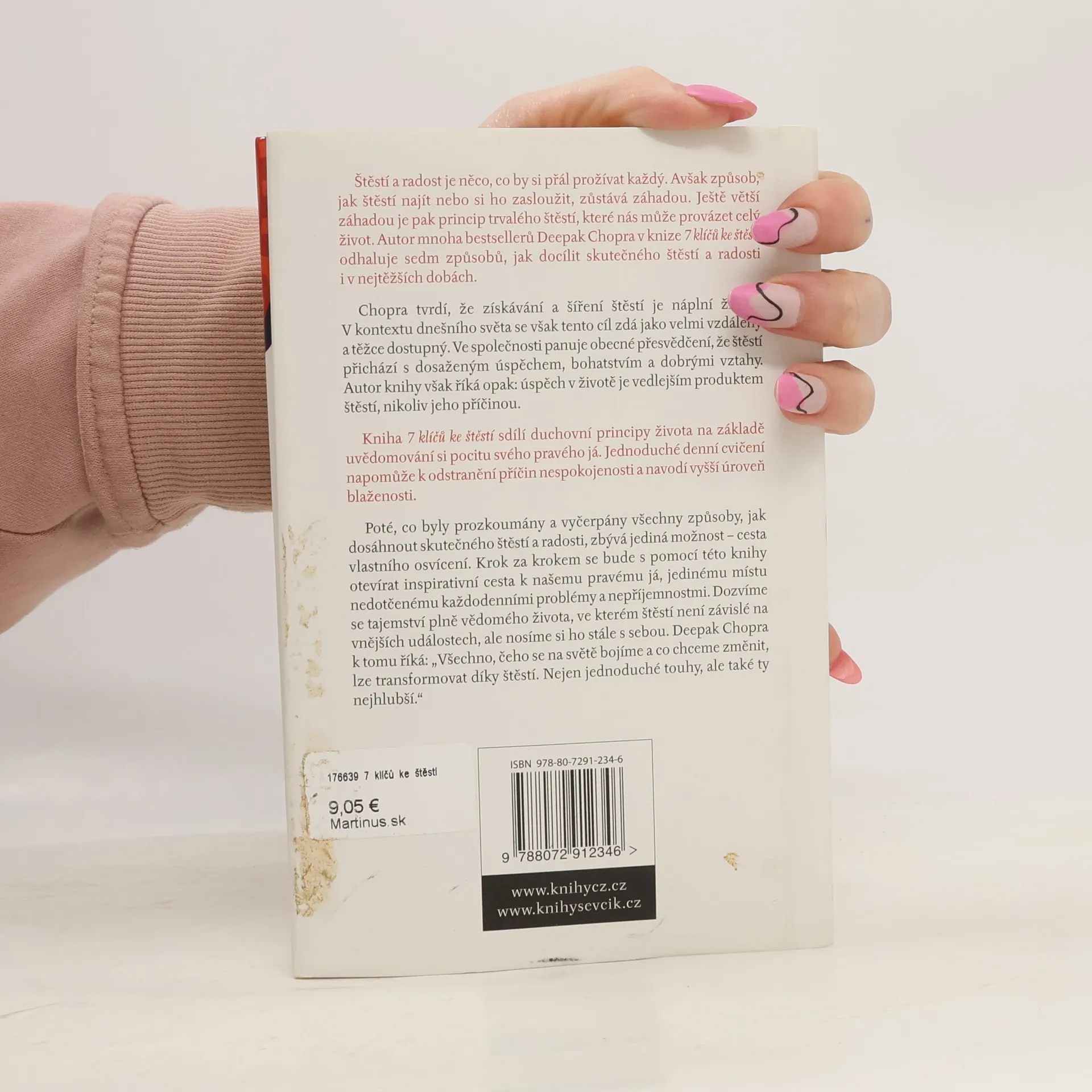 Každý člověk chce být šťastný, a přesto je cesta ke štěstí velkou záhadou, kterou se lidstvo snaží vyřešit od počátku své existence. A tím největším tajemstvím je klíč k dokonalému a trvalému štěstí, které nám nikdy nikdo nevezme. Deepak Chopra, jenž je autorem mnoha bestsellerů, nabízí takových klíčů hned sedm, protože říká, že v dnešní náročné době je třeba změnit mnoho přístupů k životu ve společnosti, jež klade velký důraz na úspěch, bohatství, slávu a soutěživost. Chopra tvrdí, že opak je pravdou, protože všechny životní úspěchy jsou pouhé důsledky, nikoli příčiny dokonalého štěstí. Postupně předkládá jednotlivé klíče: vztah k vlastnímu tělu, sebeúcta, pročištění života, skromnost, zaměření na přítomnost, vnímání vnitřního světa a žití v osvícení. Chopra vystudoval medicínu a jako správný lékař sestavil recept, který člověka postupně a velmi snadno vede z jedné úrovně na druhou a pomocí dobrých rad a mnoha praktických cvičení dospěje až na tu nejvyšší, k osvícení. Je to recept, který od základů změní váš život a odhalí vám tajemství dokonalého a trvalého štěstí.