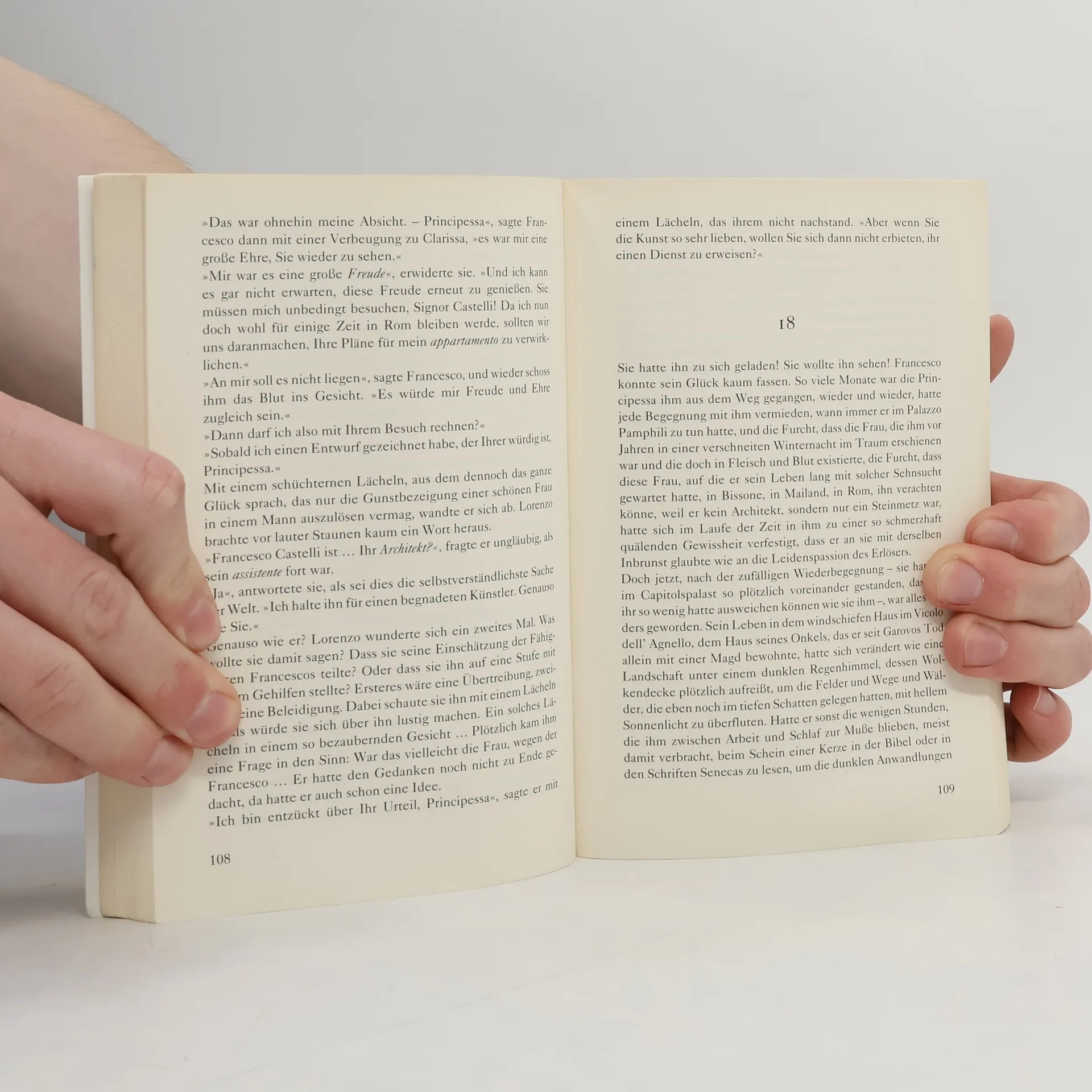Rom, 1623. Während die katholische Welt den neuen Papst feiert, trifft in der Ewigen Stadt eine blutjunge Engländerin ein, hungrig auf Leben und Freiheit. Umworben von zwei genialen Architekten, erliegt sie dem Zauber der Liebe und dem Zauber der Kunst. Sie ahnt nicht, dass es schon bald um Leben und Tod gehen wird. Im Rom der Kardinäle und Kurtisanen erlebt Clarissa eine Welt verwirrender Gegensätze: von Glanz und Elend, Chaos und Größe, Freizügigkeit und Sittenstrenge. Schnell gerät sie in den Bann dieser faszinierenden Welt, in der die Künste zu nie geahnter Blüte gelangen. Vor allem aber gerät die Principessa, als die Clarissa inzwischen in der ersten Gesellschaft Roms bekannt ist, in den Bann zweier junger Baumeister, die Kometen gleich ihren Weg nach oben beschreiten. Denn Clarissas Geschichte ist zugleich die Geschichte der berühmtesten Architekten ihrer Zeit: Lorenzo Bernini und Francesco Borromini. Der eine von brillanter, weltgewandter Eleganz, Liebling der Frauen und Favorit des Papstes; der andere ein in sich gekehrter Mann, ein Getriebener auf der Suche nach Vollkommenheit. Gemeinsam wollen sie das neue Rom errichten. Doch die Liebe zu Clarissa verwandelt die zwei Freunde in erbitterte Feinde.