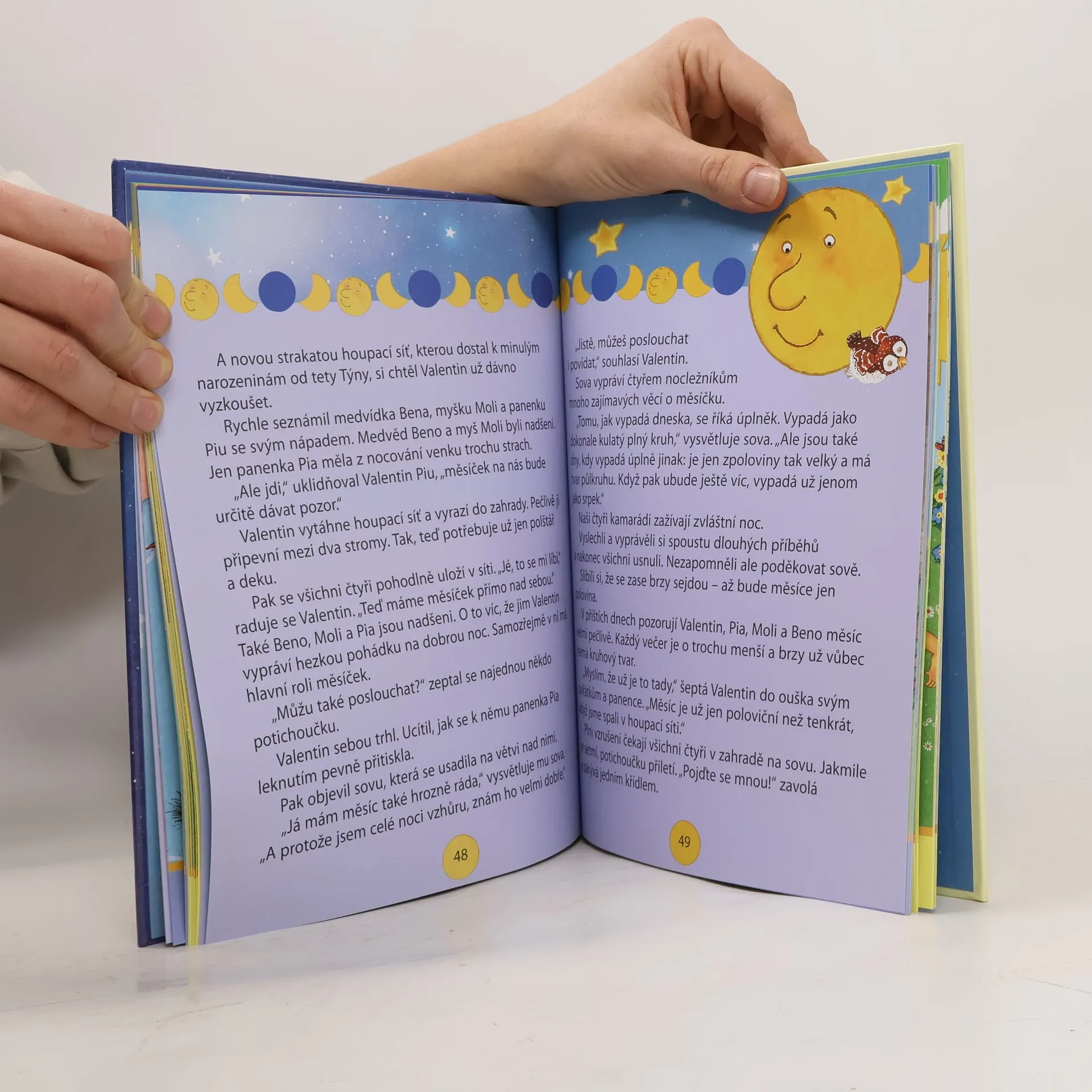 V této půvabné knížce, ilustrované s láskou a fantazií, najdete roztomilé příběhy na dobrou noc: o hvězdičkách, o usínání a snech, o sluníčku a počasí, o měsíčku a jeho proměnách, o přátelství, o ročních obdobích, o dětech a o tom, co rády dělají. Je vytištěna velkými písmeny a je na každé straně bohatě ilustrována. Určena je k procvičování čtení nebo předčítání, ale i k vyprávění a snění! (čtení před spaním)