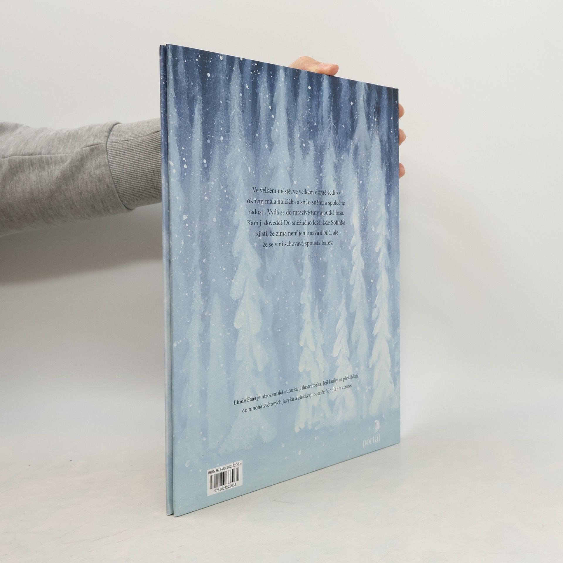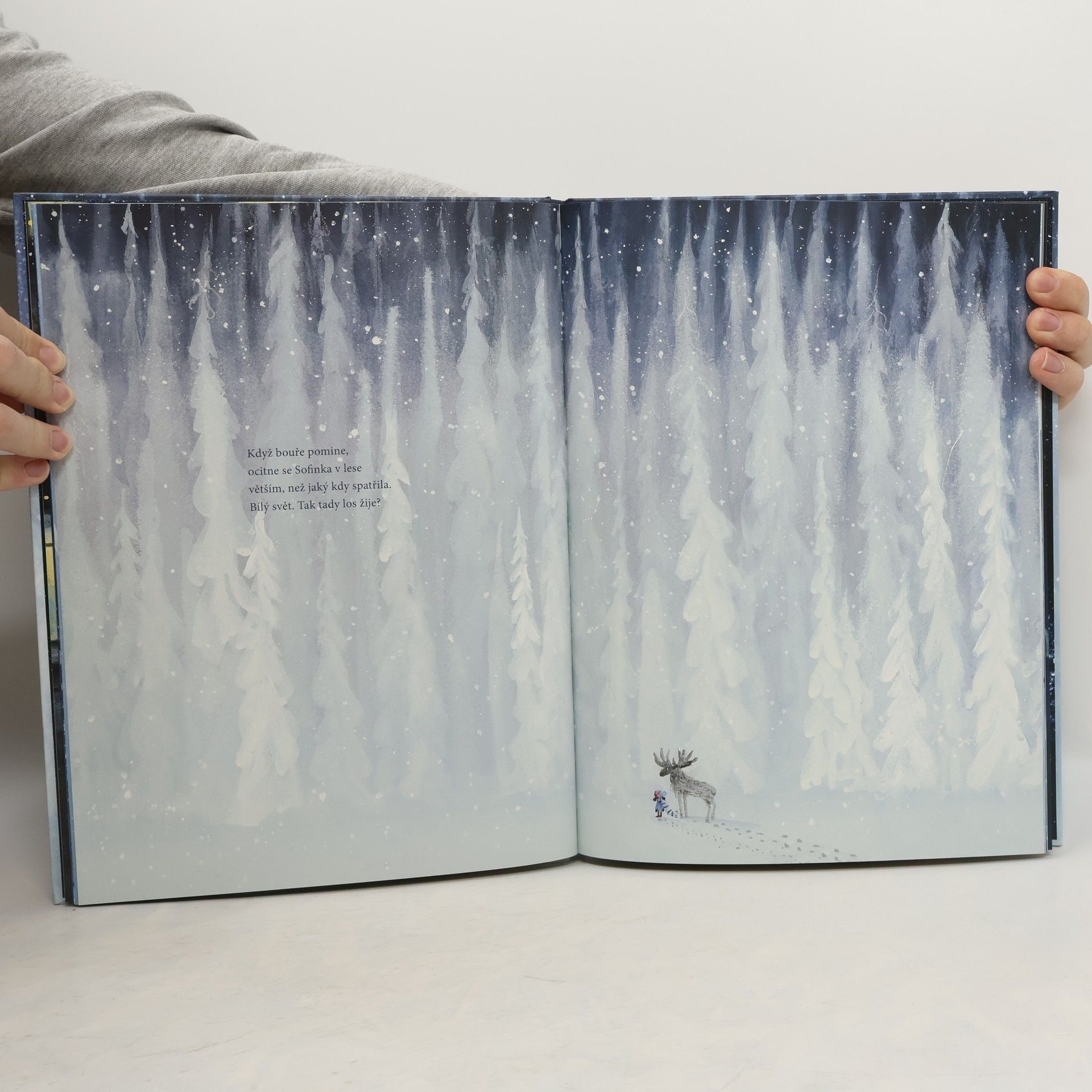 Ve velkém městě, ve velkém domě za oknem, sedí malá holčička a sní o sněhu. Vydá se do mrazivé tmy a potká tam losa. Kam ji dovede? Do sněžného lesa, kde Sofie zjistí, že zima není jen tmavá a bílá, že se v ní schovává spousta barev.
