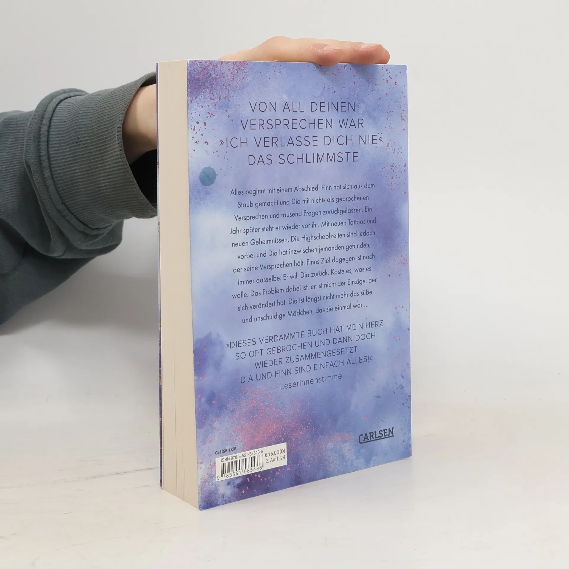Von all deinen Versprechen war »Ich verlasse Dich nie« das schlimmste Alles beginnt mit einem Abschied: Finn hat die Stadt verlassen und Dia mit nichts als gebrochenen Versprechen und tausend Fragen zurückgelassen. Ein Jahr später steht er wieder vor ihr. Mit neuen Tattoos und neuen Geheimnissen. Die Highschoolzeiten sind jedoch vorbei und Dia hat inzwischen jemanden gefunden, der seine Versprechen hält. Finns Ziel ist noch immer dasselbe: Er will Dia zurück. Koste es, was es wolle. Das Problem dabei ist, er ist nicht der Einzige, der sich verändert hat. Dia ist längst nicht mehr das süße und unschuldige Mädchen, das sie einmal war … Das intensive und emotionale Finale von Dia & Finn. Als wunderschön veredelte Klappenbroschur mit Naturpapier und Glitzereffekt. //Dies ist der dritte Band der mitreißenden Enemies to Lovers Romance »Easton High«. Alle Romane der fesselnden New Adult Reihe: -- Band 1: Dear Love I Hate You -- Band 2: Dear Heart I Hate You -- Band 3: Dear Heart I Miss You// Diese Reihe ist abgeschlossen.