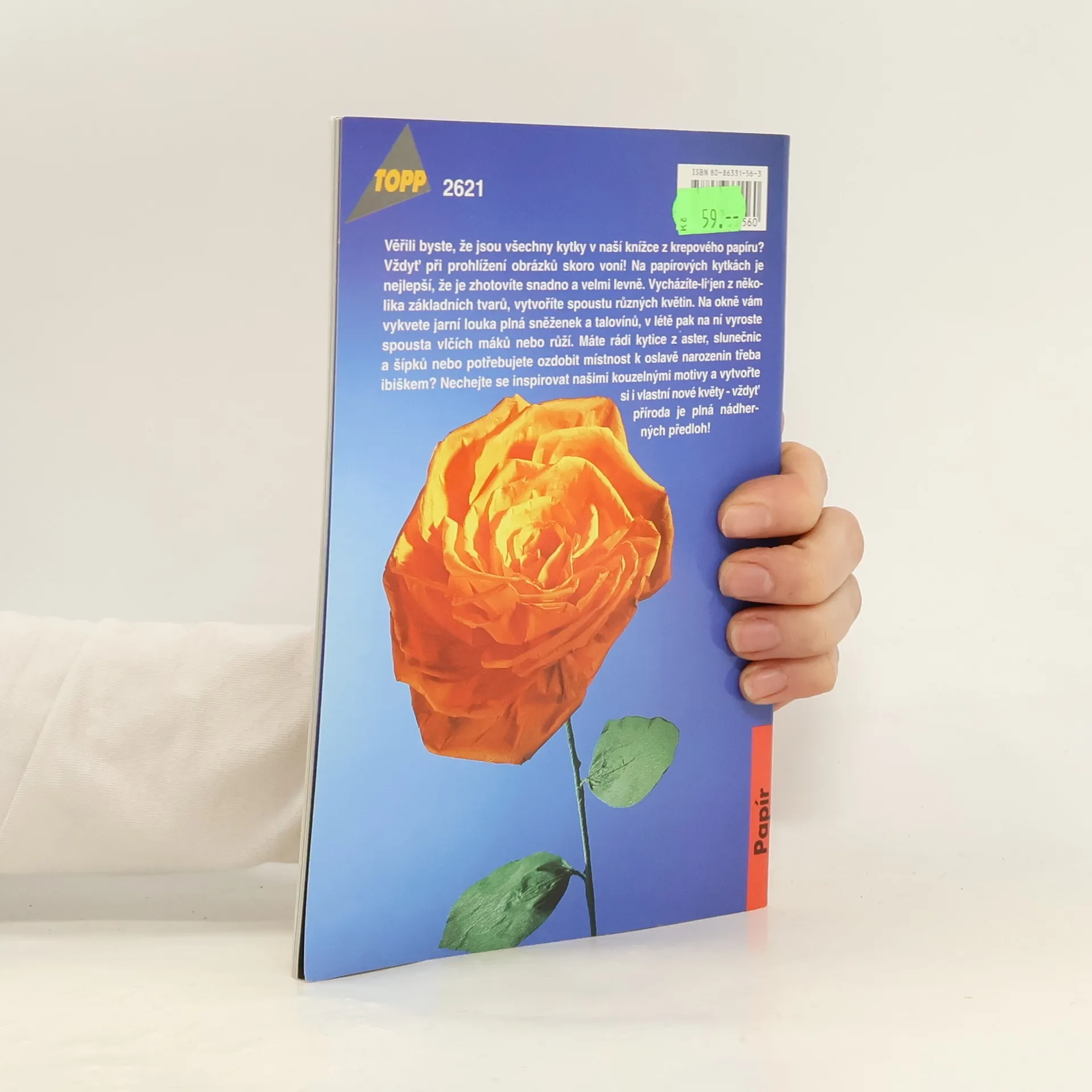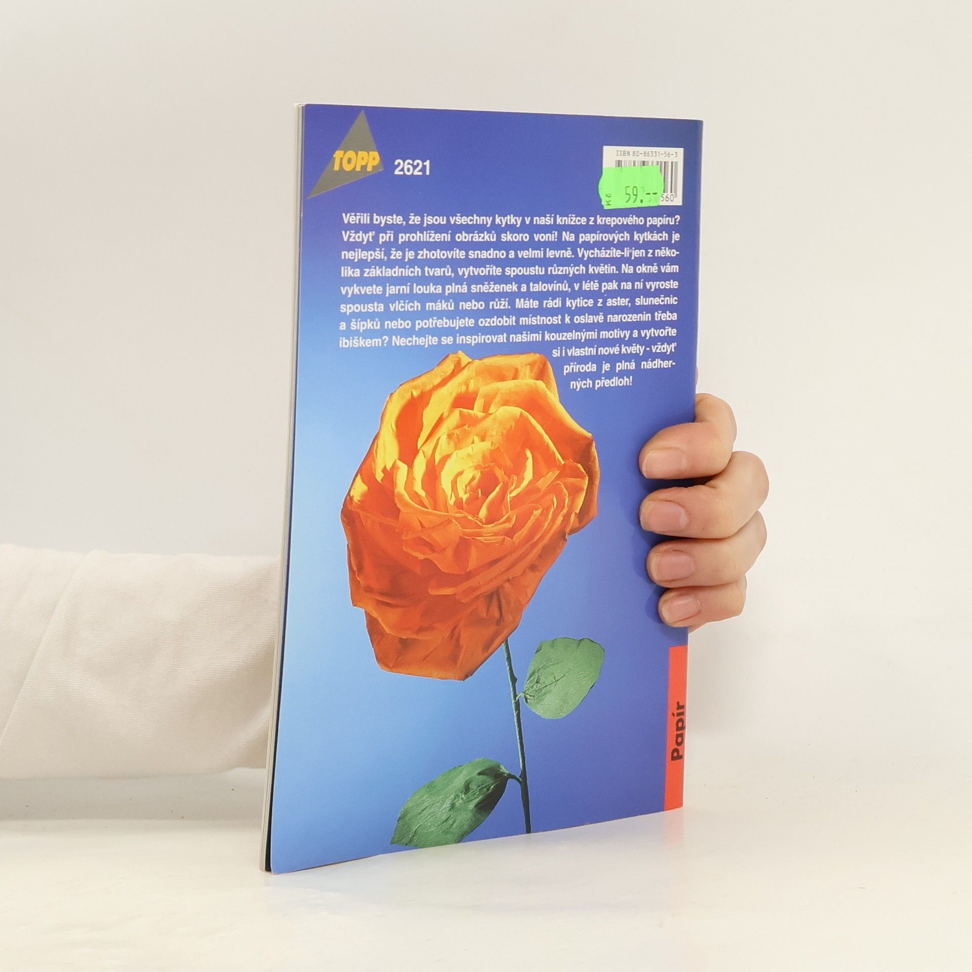 Všechny kytky v této knížce jsou z krepového papíru. Na papírových kytkách je nejlepší, že je zhotovíte snadno a levně. Vycházíte-li jen z několika základních tvarů, vytvoříte spoustu různých květin. Nechejte se inspirovat předlohami v této knížce a vytvořte si i vlastní nové květy - vždyť příroda je plná nádherných předloh! Pro všechny věkové kategorie.