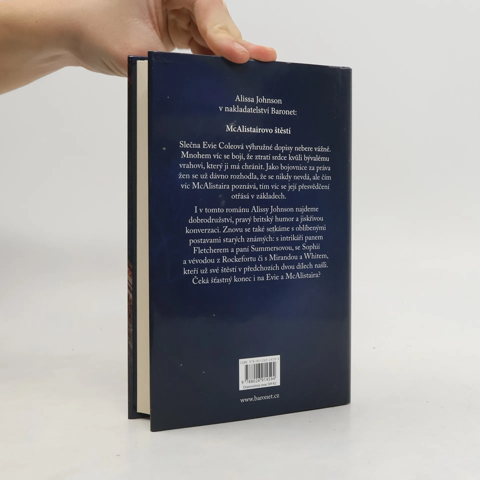 Slečna Evie Coleová výhružné dopisy nebere vážně. Mnohem víc se bojí, že ztratí srdce kvůli bývalému vrahovi, který ji má chránit. Jako bojovnice za práva žen se už dávno rozhodla, že se nikdy nevdá, ale čím víc McAlistaira poznává, tím víc se její přesvědčení otřásá v základech. I v tomto románu Alissy Johnson najdeme dobrodružství, pravý britský humor a jiskřivou konverzaci. Znovu se také setkáme s oblíbenými postavami starých známých: s intrikáři panem Fletcherem a paní Summersovou, se Sophií a vévodou z Rockeforte či s Melanií a Whitem, kteří už své štěstí v předchozích dvou dílech našli. Čeká šťastný konec i na Evii a McAlistaira?