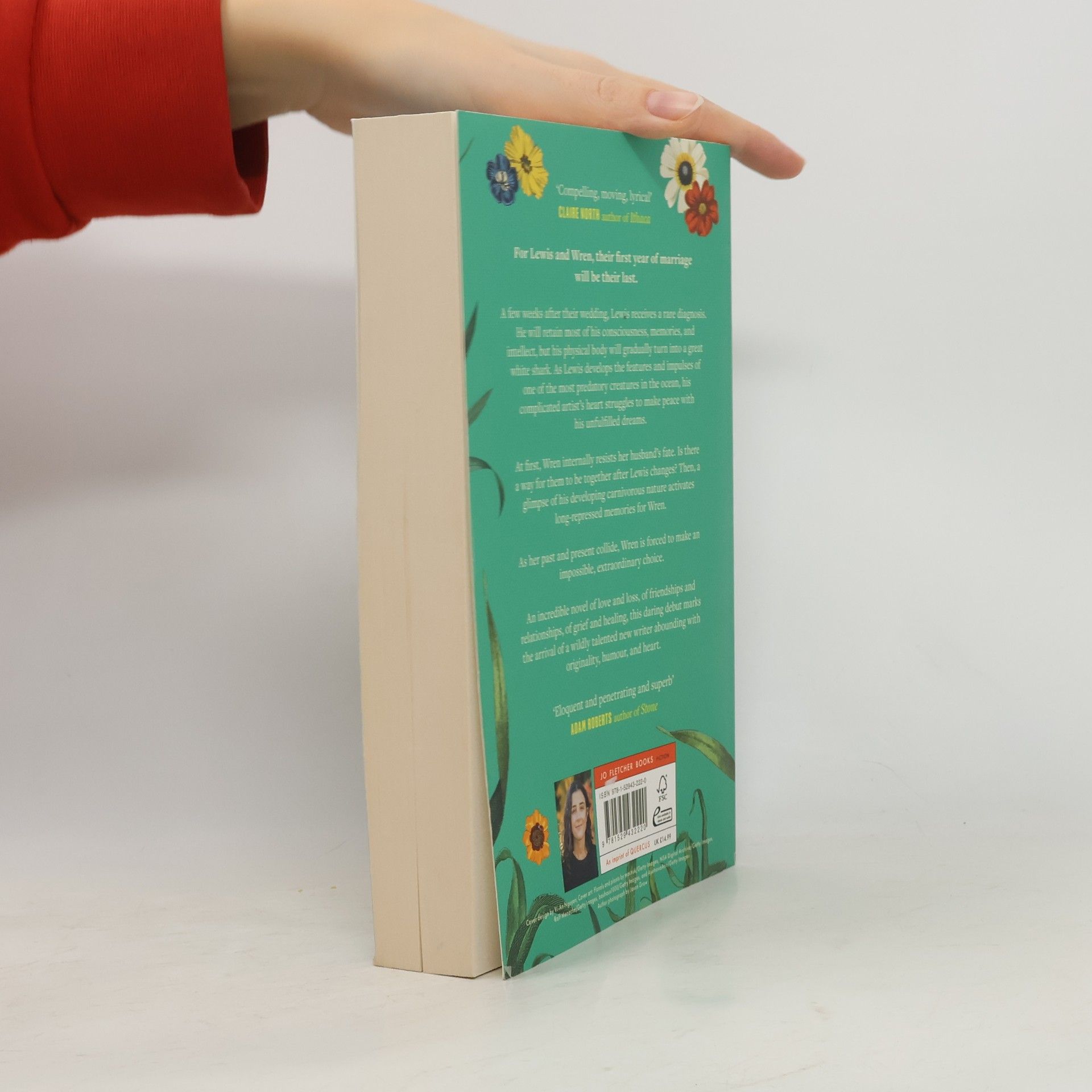 For Lewis and Wren, their first year of marriage is also their last. A few weeks after their wedding, Lewis receives a rare diagnosis: He will retain most of his consciousness, memories, and intellect, but his physical body will gradually turn into a great white shark. As Lewis develops the features and impulses of one of the most predatory creatures in the ocean, his complicated artist’s heart struggles to make peace with his unfulfilled dreams.At first, Wren internally resists her husband’s fate. Is there a way for them to be together after Lewis changes? Then, a glimpse of Lewis’s developing carnivorous nature activates long-repressed memories for Wren, whose story vacillates between her childhood living on a houseboat in Oklahoma, her time with her college ex-girlfriend, and her unusual friendship with a woman pregnant with twin birds.