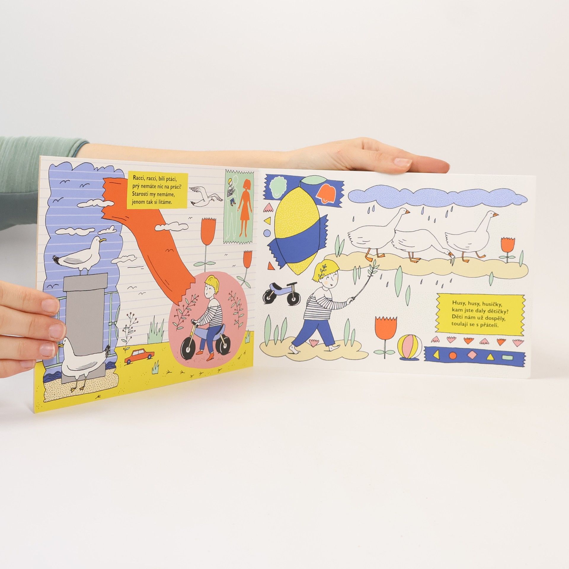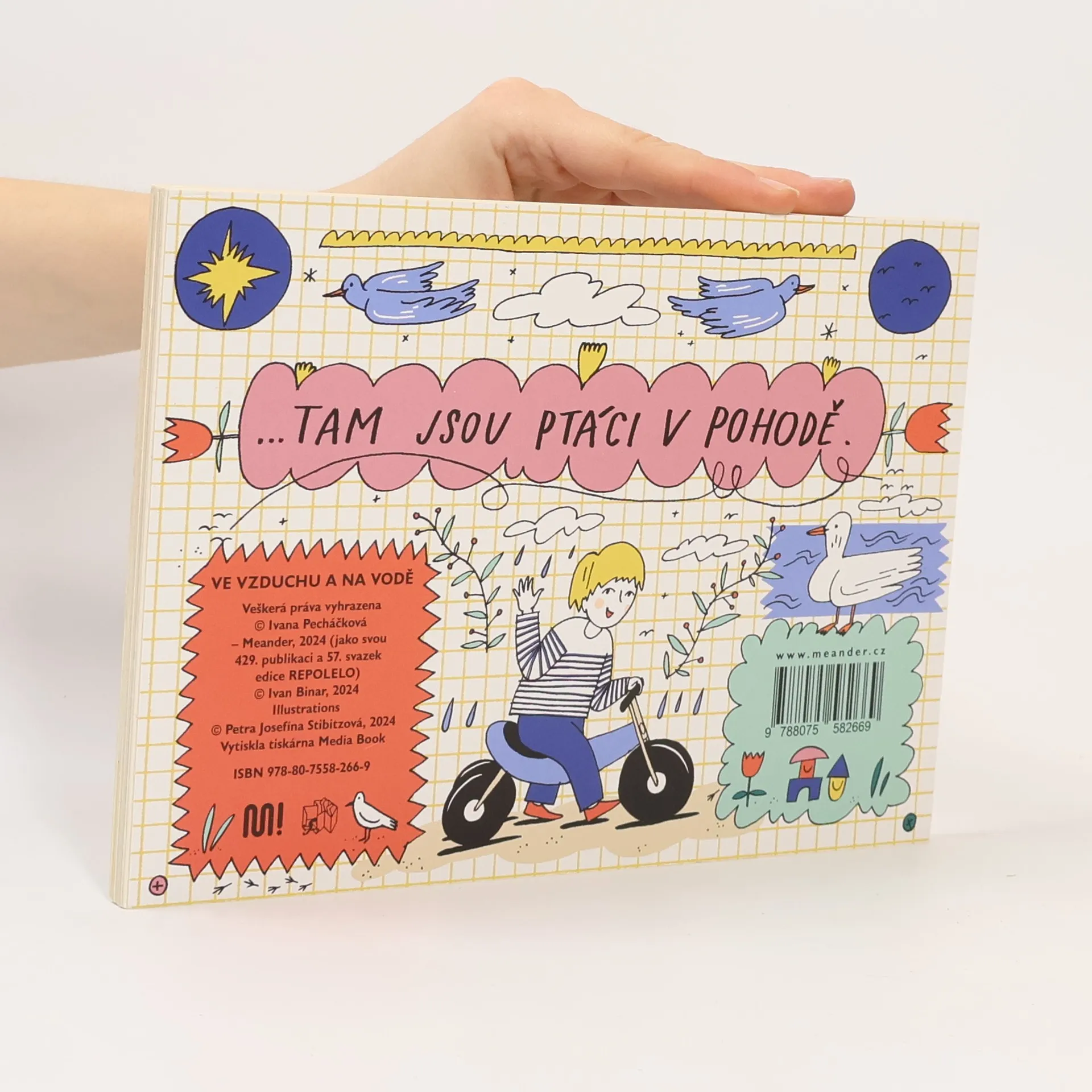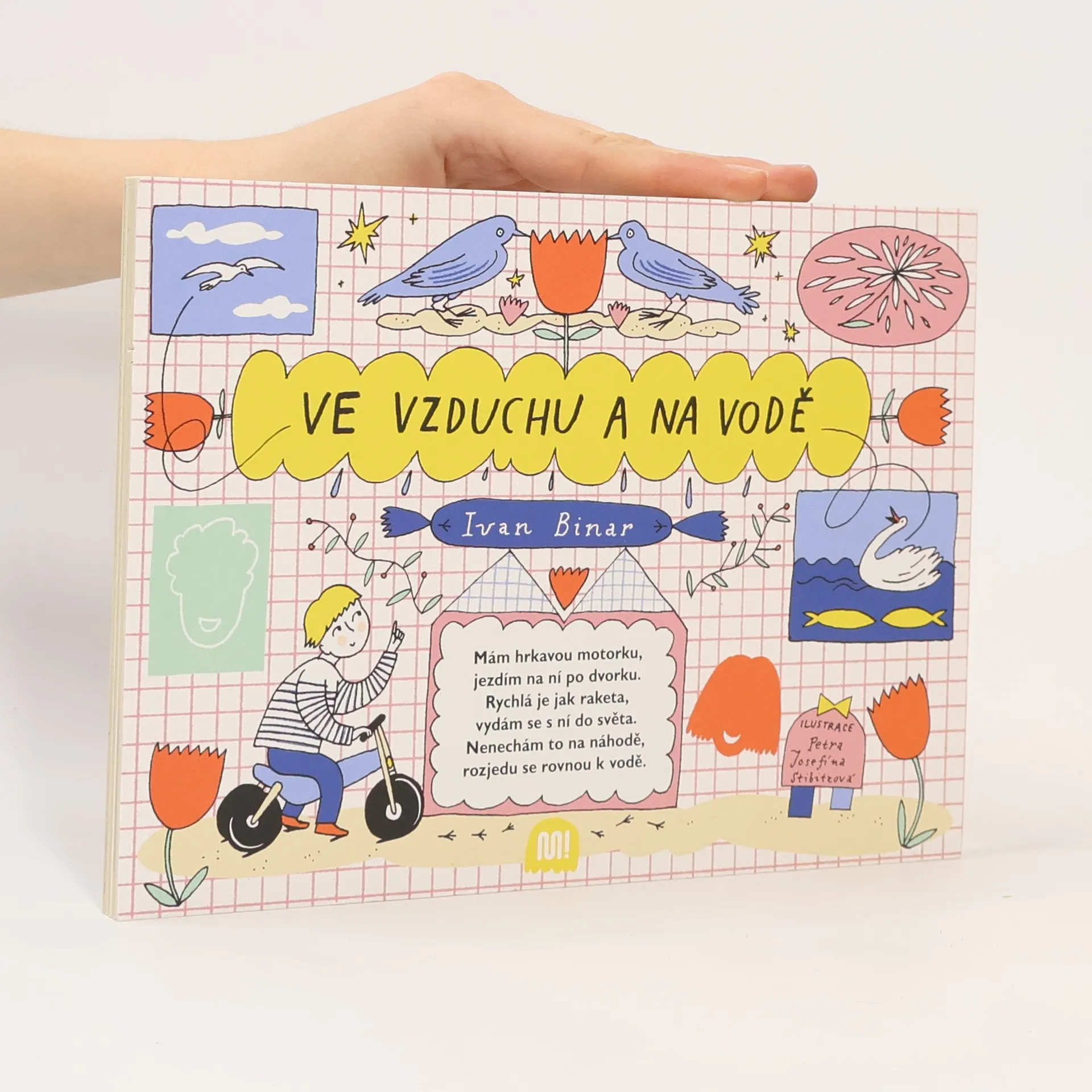 Ptactvo nebeské je neposedné a nepolapitelné. Ptáček se kolem nás a nad námi jen mihne – a je v trapu! Jakpak si ho má prohlédnout dítě, které se prohání po chodníku na odrážedle? Jak jinak než v knížce na obrázku. Tam se může na každého ptáčka pěkně zblízka podívat a brzy dokáže pojmenovat nejen sýkorky a kachny, ale třeba i ledňáčky, straky nebo kormorány a zamávat jim na procházce, když se potkají...